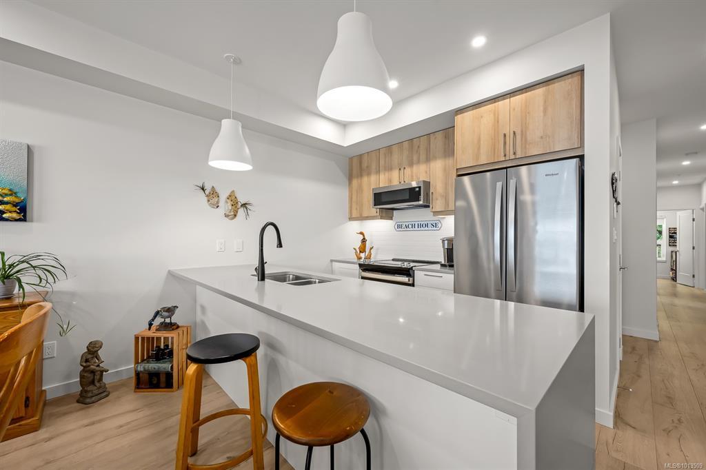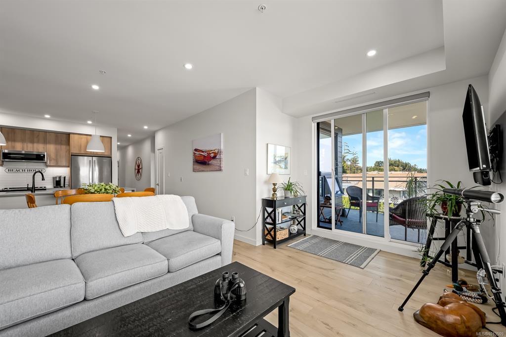 Ocean view condo with two parking spots.� Built in 2023, this property looks brand new inside and out. Exceptional features include three bedrooms plus den, open concept end unit with ocean views on two sides facing west, enjoy the boats and wildlife passing by with Quadra Island in the background.� Neutral paint tones, designer kitchen with�quartz countertops, two full bathrooms, and high end appliances. The owners have enjoyed the heat pump with air conditioning, being walking distance�to marina, cafes and shopping, yet quiet setting in the back. A perfect�investment, as most condominiums do not have 2 secured entry parking spots designated and 3 bedrooms plus a den. Open air hallways with parklike setting at the back. Ocean views all day long with sunsets in the evening, lock up and go lifestyle.