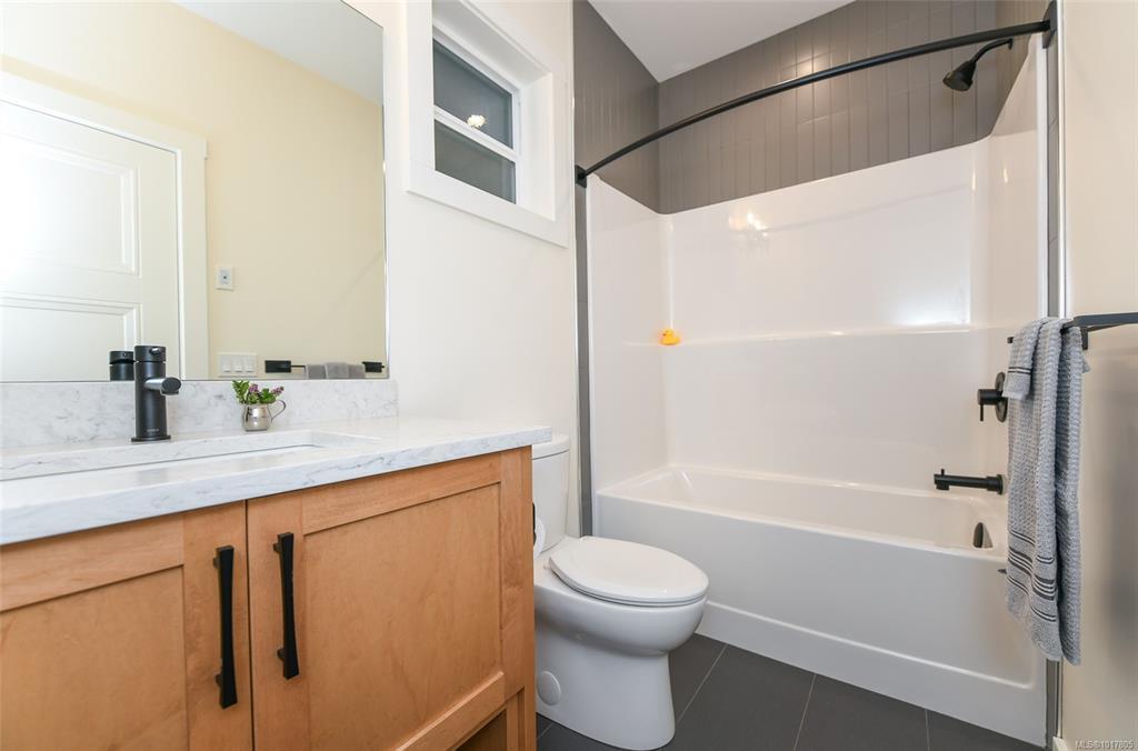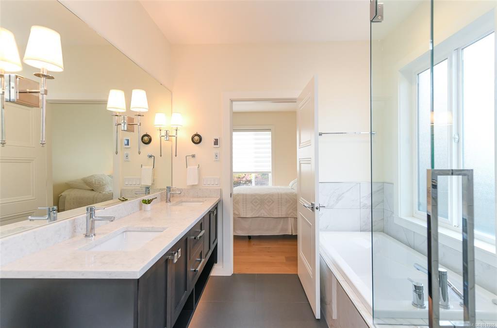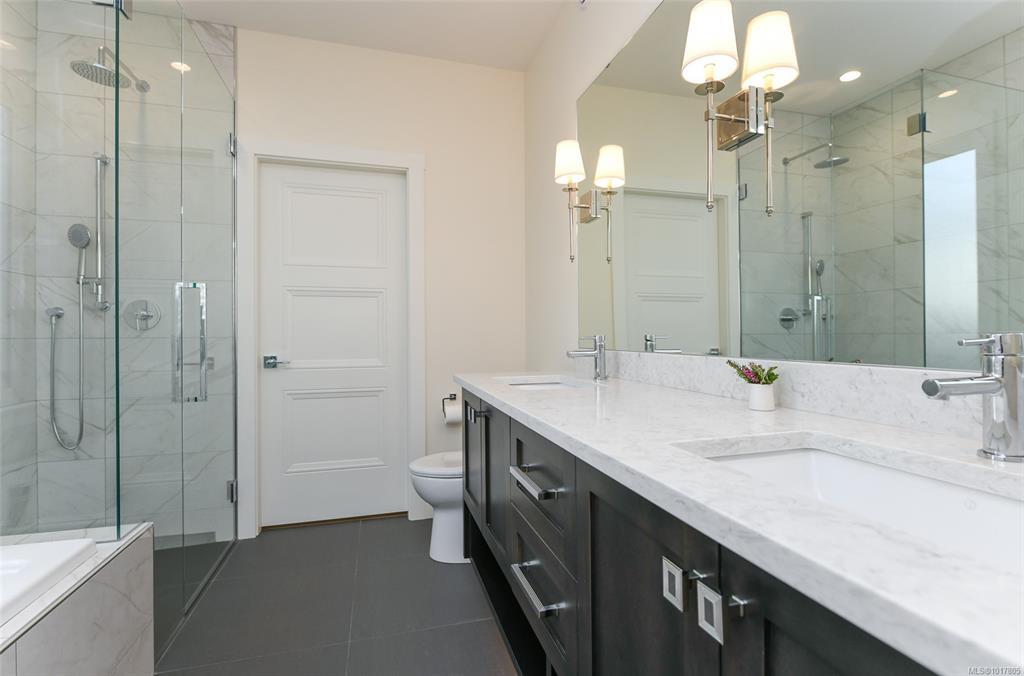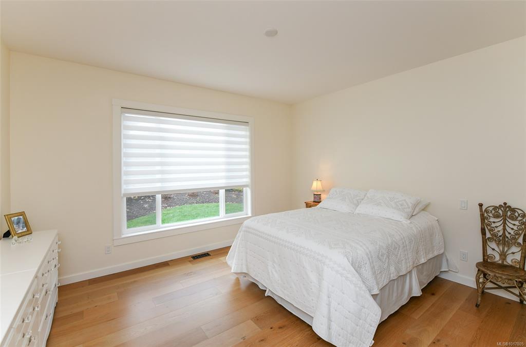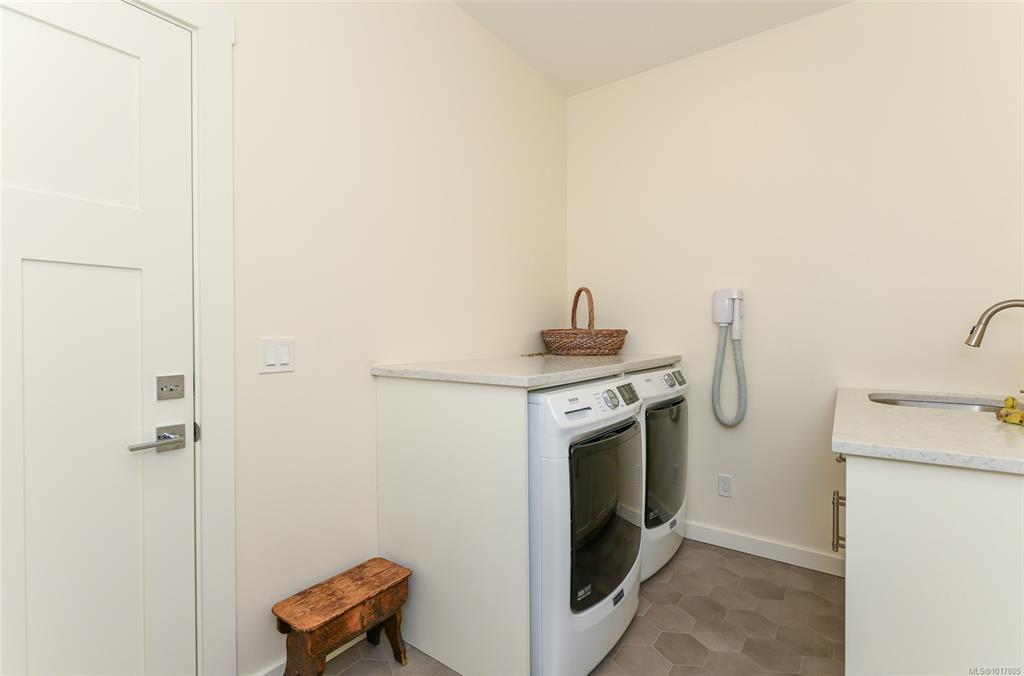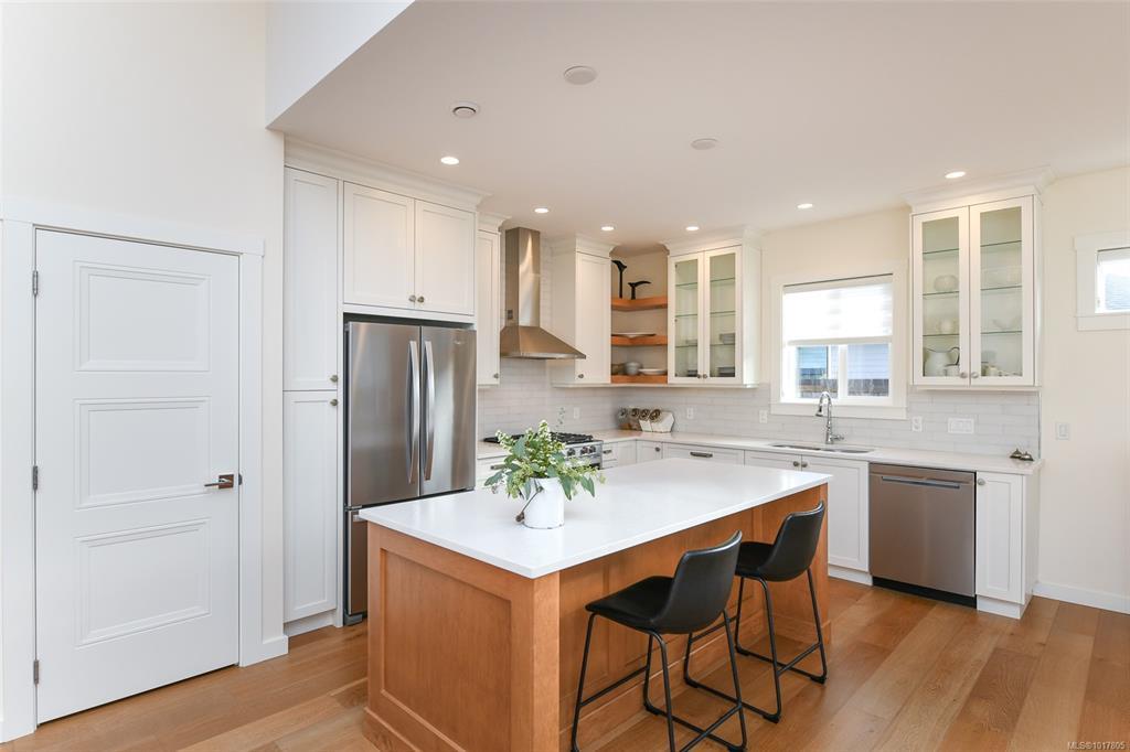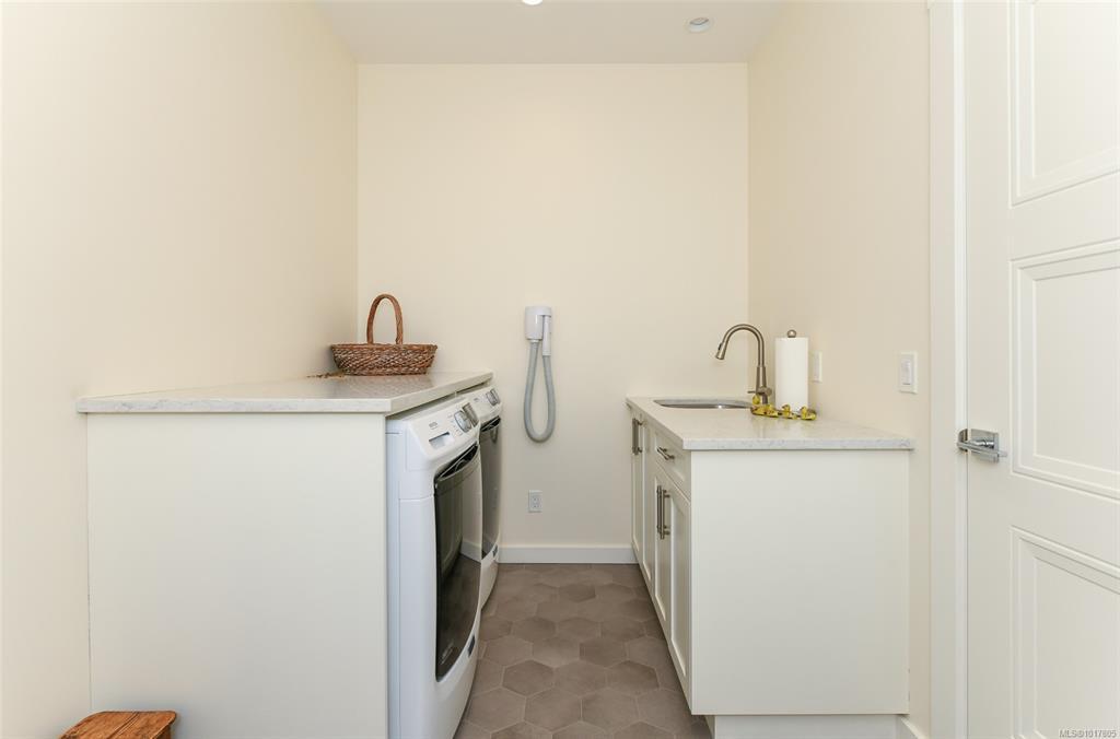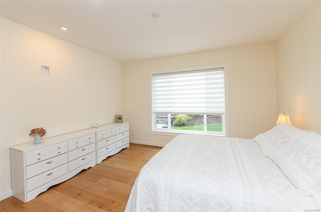 West Coast rancher with elegant detailed finishing. Main living area features full-window feature wall with approximately 12 foot ceilings and natural light. The home has an impressive kitchen with glass feature doors, timber shelving, indirect lighting, brick tiled backsplash, pantry and entertainment sized island with quartz countertops. Includes all appliances including gas range, microwave in the island, HRV, heat pump, solar assist panels and under-height basement-crawl space for storage with access/stairs in garage. The master bedroom features 5 piece ensuite with heated tiles, sconces & walk-in closet with built in shelving. Professionally landscaped yard with 2 patios, mature foliage, and sturdy fence. Inside and out, this home has been very well loved, freshly painted with neutral white colour scheme, shows as brand new. This home is move-in ready, just turn the key and relax. Walking trails past ponds nearby.
