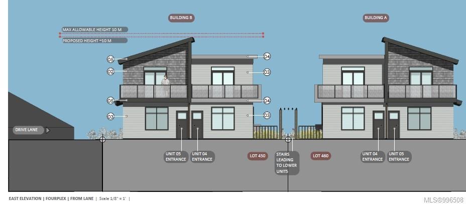 Approved Development Opportunity10 residential+2 Commercial Units. Located in vibrant South Nanaimo,450 & 460 Irwin Street offer a rare and ready-to-go development opportunity.Centrally positioned within walking distance to the scenic seawall and convenient shopping, this property combines an excellent location with an already-approved vision for the future.The project has a Development Permit approved by the City of Nanaimo for two multi-family buildings, each thoughtfully designed with five residential units + one CRU. Building A and Building B are mirror images, and the floor plans are up to 1000 sq/ft.The innovative design ensures appropriate parking for residents and supports much-needed "missing middle" housing — a critical type of housing that bridges the gap between single-family homes and larger apartment complexes.This is a prime opportunity to step into a project that aligns with Nanaimo’s growing demand for diverse, attainable housing.Measurements approximate to be verified