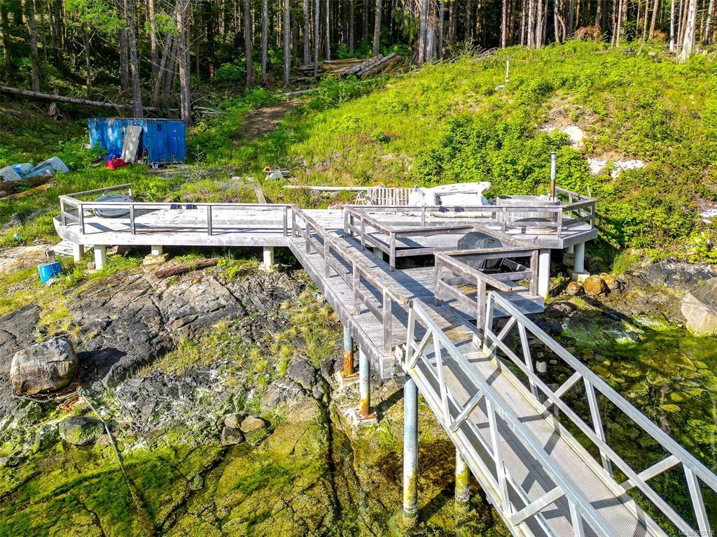 INCLUDED W SALE IS A 1995 28.5FT BAYLINER. A unique boat/plane-access property, already set up with an amazing year-round, all-tides dock. The current owners have cleared some of the trees to the water's edge for a future build site and hired a crew to construct a 62’ x 20’ engineered yellow cedar deck, complete with a 40’ x 10’ dock and a 40’ x 4’ pier. A cleared skidder trail winds through the property, leading to a 25’ x 14’ platform deeper in the forest, built for a large canvas tent included with the sale. The Sea Can, equipped with benches, lighting, and proper ventilation—has been converted into a functional workshop. Catch crabs right off the dock, relax in the 7ft wood-fired Alumatub, watch the Lady Rose, whales and visit with Sidney the Seal. This is the complete package with fresh water lines run through the property with taps at the cabin site, deck and dock. If you've been envisioning a remote, boat-access lifestyle, this is the perfect place to bring that vision to life.