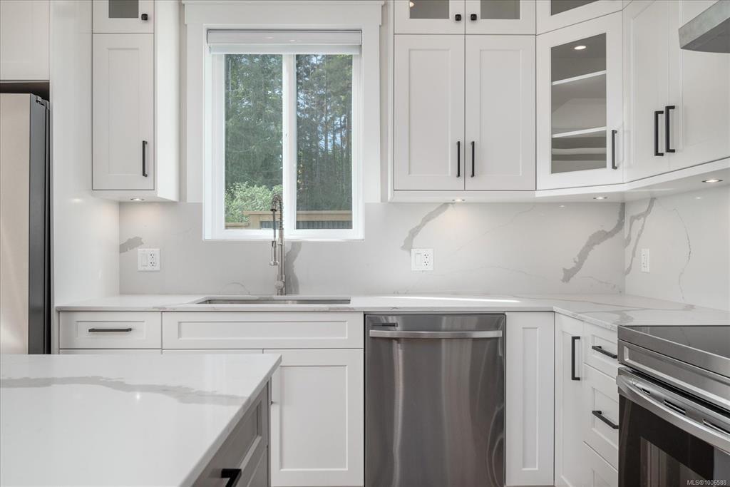 GST Included! Lovely 2 bedroom plus den rancher! Gourmet kitchen with classic shaker cabinetry, quartz counters, beautiful quartz backsplash, island & S/S appliances included! Entertain in the adjoining living room offering ample natural light, built-in storage, wainscoting & cozy, modern fireplace. The spacious master bedroom includes W/I closet & 4-pce ensuite with W/I shower. A dining area, second bedroom, den/office, 4 pce-bath & laundry room complete the smart layout. Quality built with home warranty and with additional features incl. hot water on demand, A/C, blinds, 9ft. ceiling, coffered ceiling in living & primary bdrm. Wired for additional technology incl. camera surveillance, alarm system, EV charger & solar panels. The level lot is accentuated w/ tasteful, aggregate driveway & walkways, fenced & landscaped w/ irrigation. This location can't be beat - this walkable location is located minutes away from urban amenities. Verify data & measurements if important.