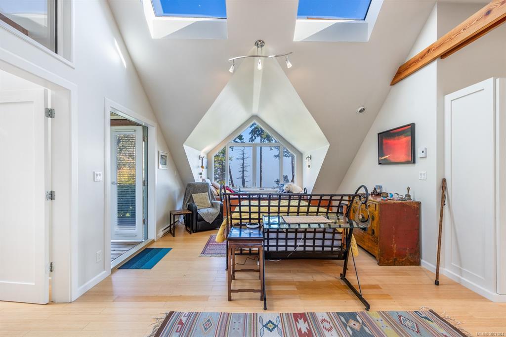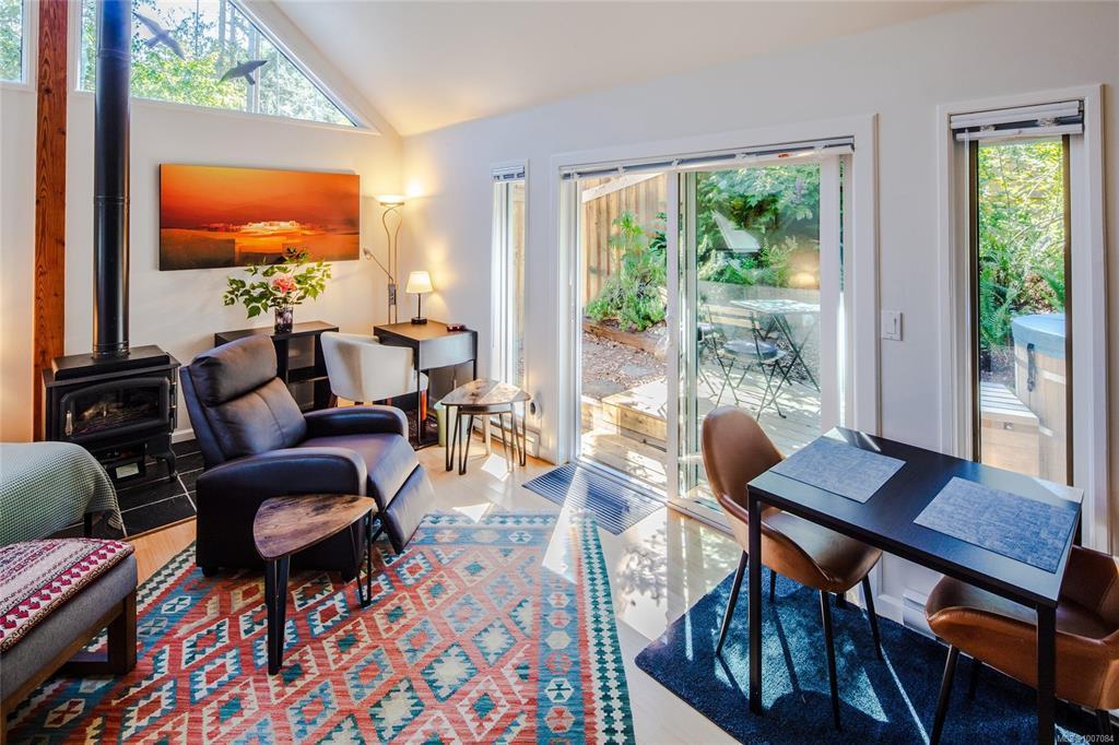 Stunning Denman Island oceanfront estate + income powerhouse! This architect-designed home sits on 2 beautifully landscaped acres with 200' of pristine waterfront. The principal residence features soaring 25' vaulted ceilings, a gourmet kitchen with high-end finishes, skylights, and breathtaking ocean views from large windows. A separate guest building offers 3 luxurious suites - each with private entry, kitchen, ocean views, fireplaces, in-floor heating, decks, gardens, plus their own hot tub and cold plunge pool. Facilities include a romantic sauna on the beach, a medical-grade sauna, a massage studio, EV charging station, caretaker cottage, and meticulously maintained grounds. The turnkey, award-winning spa resort generates $350K/year and is easy to operate. Pride of ownership shows throughout. Priced well below appraisal