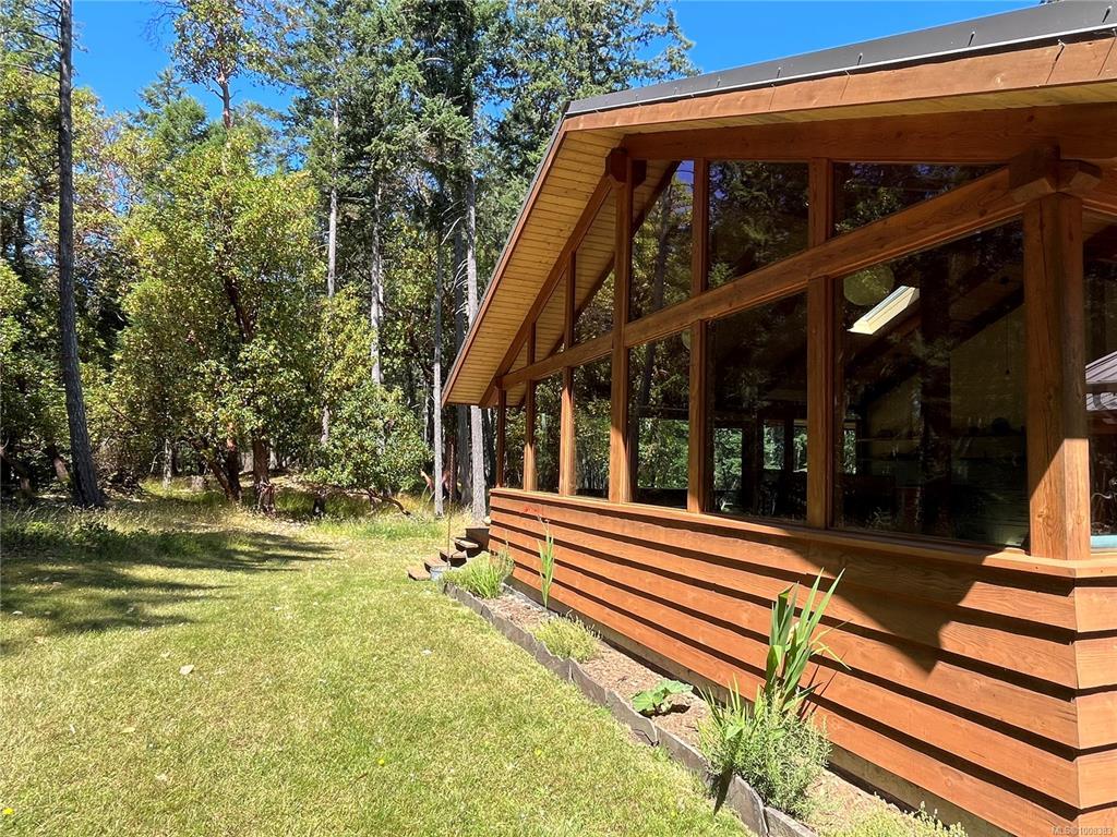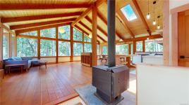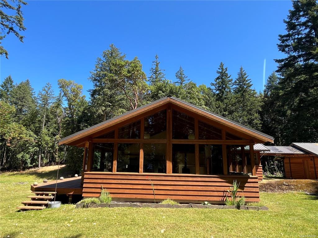 Discover the ultimate Gulf Island lifestyle with this exquisitely crafted timber frame home on 12 acres of pristine forested land on DeCourcy Island. Thoughtfully designed and beautifully built, the home features stunning custom Douglas Fir timber work, highlighting impeccable craftsmanship and attention to detail throughout. Located on the coveted sunny southwest side of the island, the property enjoys gentle ocean glimpses and serene surroundings. A rare blend of natural beauty and functionality, the land includes a workshop, a cleared area for gardening, a pond, and a reliable drilled well. Designed for self-sufficient living, the home is powered by modern off-grid systems, including Starlink internet connectivity, offering comfort without compromise. DeCourcy Island is accessible by private boat and features a well-maintained private marina and a regular floatplane service from Vancouver. Don’t miss your chance to own a piece of paradise in the Gulf Islands.