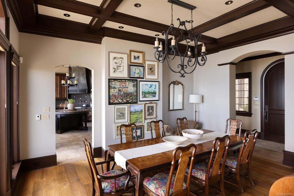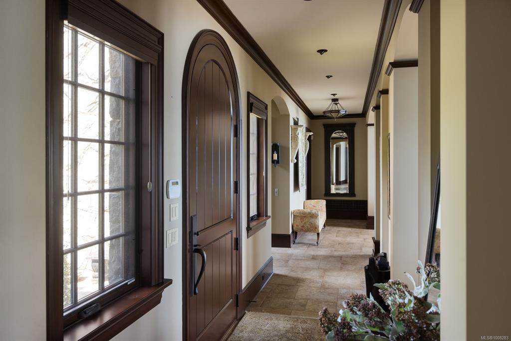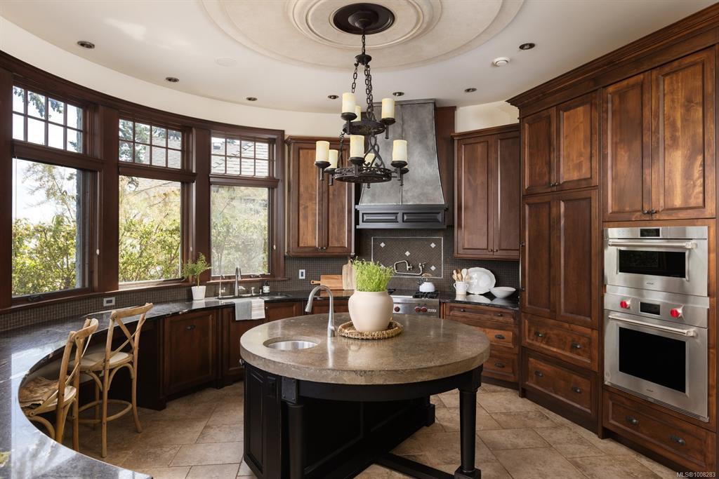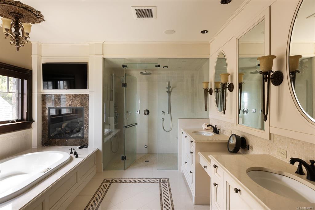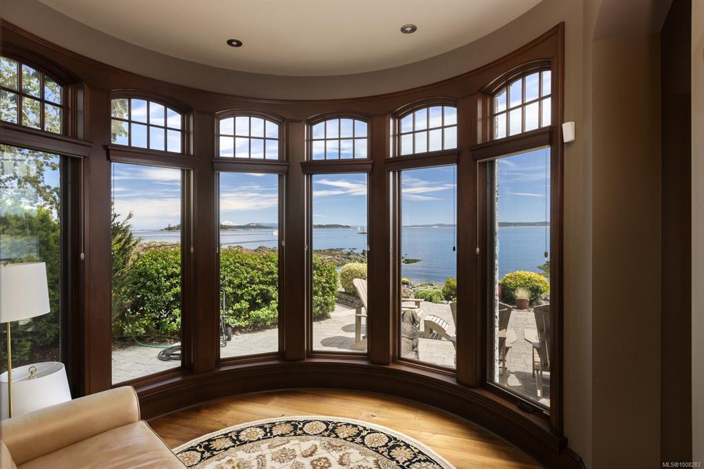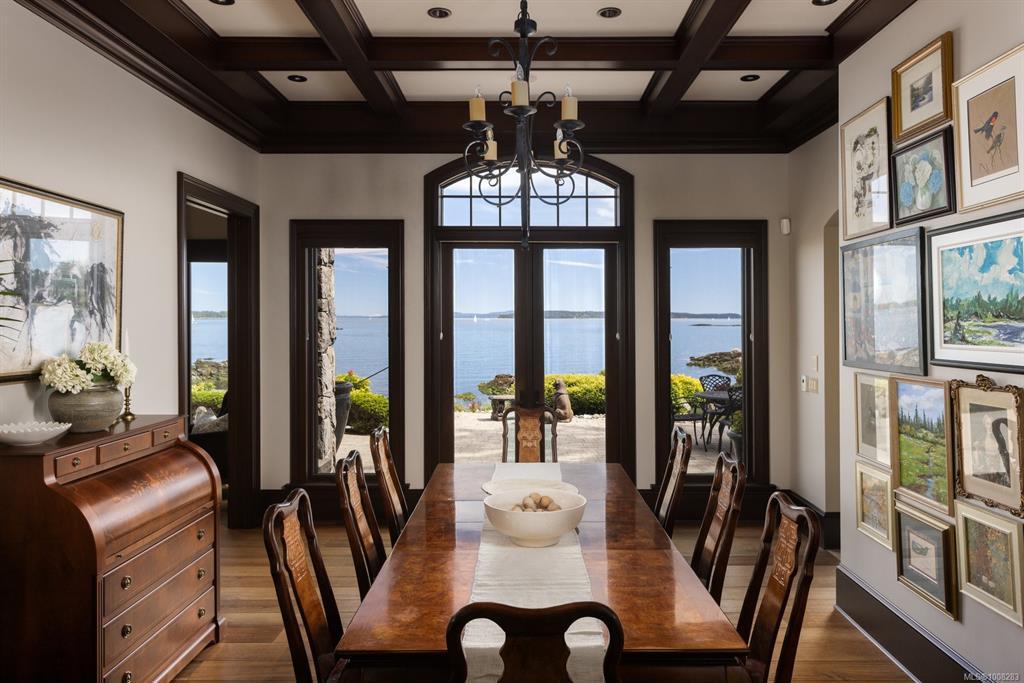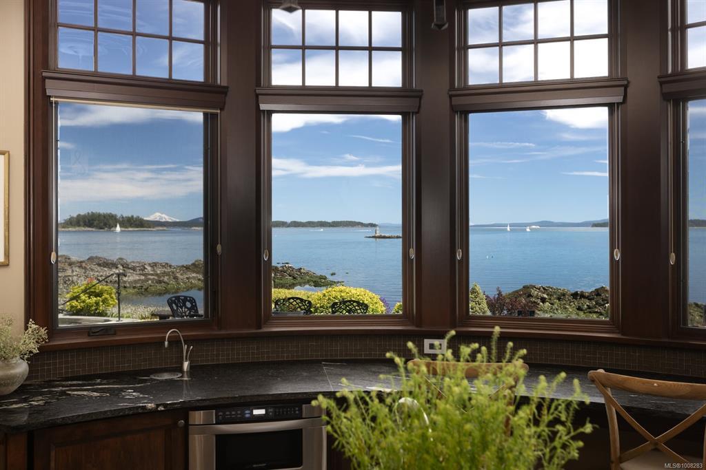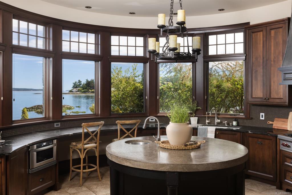 Welcome to this sophisticated West Coast waterfront retreat w/ sweeping views of the Gulf Islands & Mount Baker. This stunning stone residence features soaring ceilings & expansive windows, immersing you in the breathtaking surroundings. Designed for elegance & accessibility, it includes ground-level entry, main-floor guest suite & elevator. Main level boasts a circular kitchen w/ high-end appliances, butler's pantry, dining room & great room w/ 21-ft ceilings. A charming study w/ built-in shelves & coffered ceiling provides an ideal home office. The spiral staircase leads to a luxurious primary suite w/ circular balcony, reading nook, sauna & fireplace. From the WIC, access the enclosed sunroom w/ fireplace & balconies. The media room & family room w/ kitchenette offer additional leisure spaces. Outside, enjoy expansive terraces,private hot tub & direct access to a sandy beach. Fully fenced and gated, this prime location offers easy access to amenities, Airport, BC Ferries & marinas.