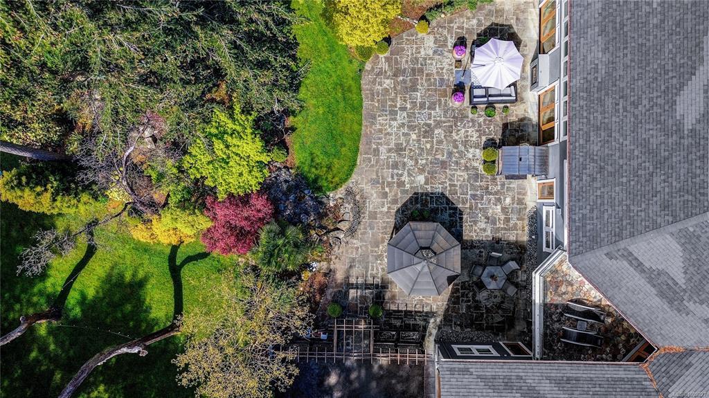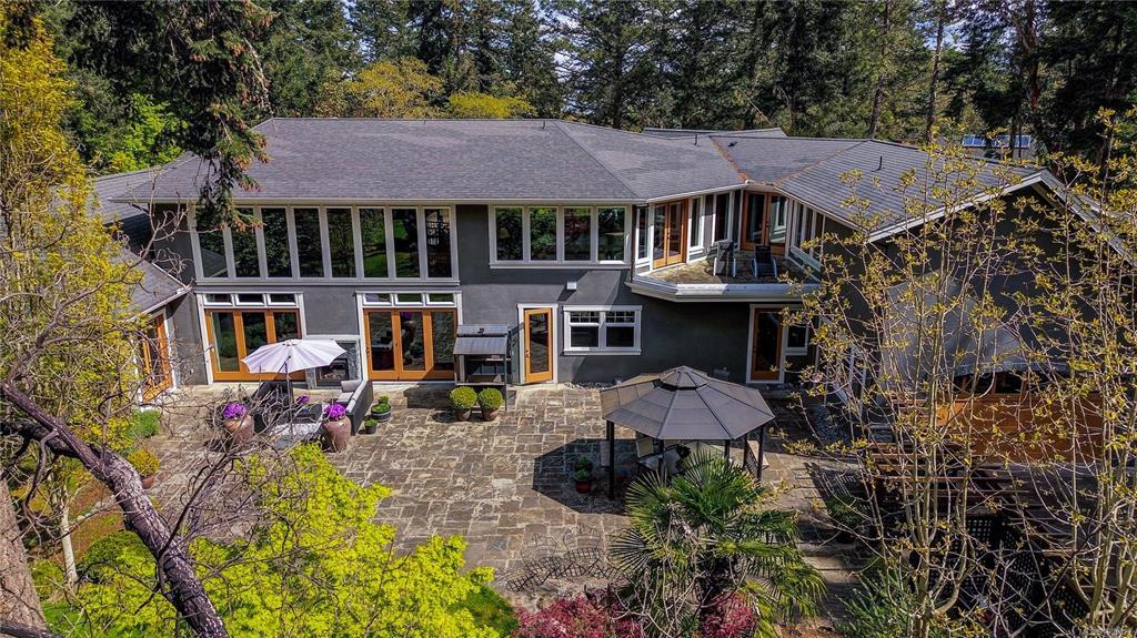 This custom-built home in the Queenswood neighbourhood offers luxury, privacy, and natural beauty. Built in 2012 with seismic-resistant steel beams, it combines style with peace of mind. Connected to municipal water, sewer, and natural gas, Set on a 1.6-acre, fully fenced estate with mature landscaping, the living room features 20-foot ceilings and accordion-style glass doors leading to a huge terrace with an indoor/outdoor fireplace. The gourmet kitchen with walk-in pantry opens to the dining & living areas with custom millwork. Main floor primary suite has terrace access and garden views. Each bedroom has an ensuite, and the Control4 system manages lighting, media, and climate. Entertain in the theatre, games room with bar, or exercise studio. Additional features include a 5-car garage, A/C, 400-amp underground service, and RV/boat parking. Near beach access, parks, schools, and Cadboro Bay Village, this home offers both seclusion and convenience. A resilient sanctuary built to last.