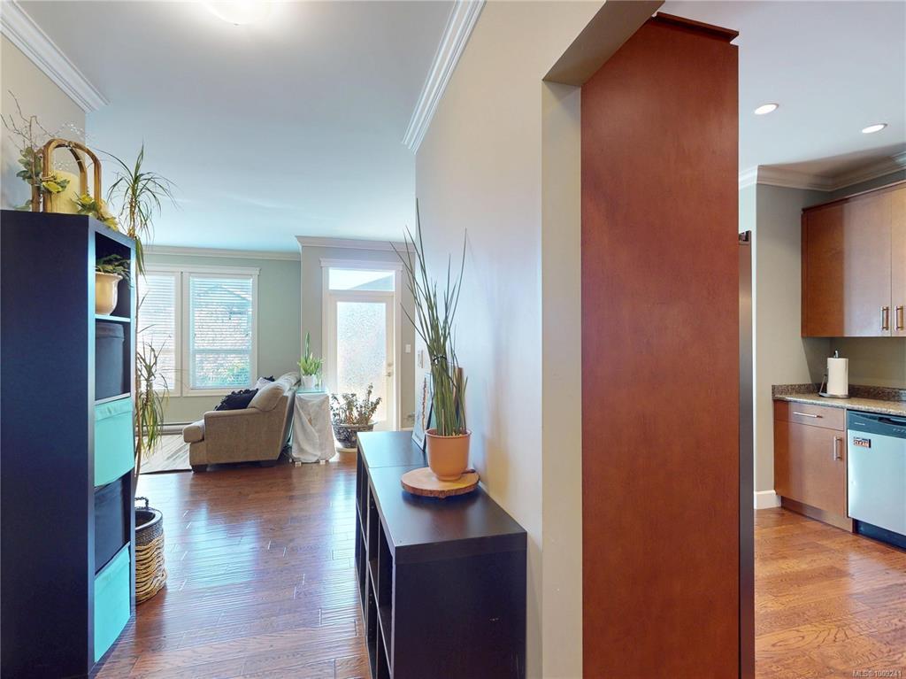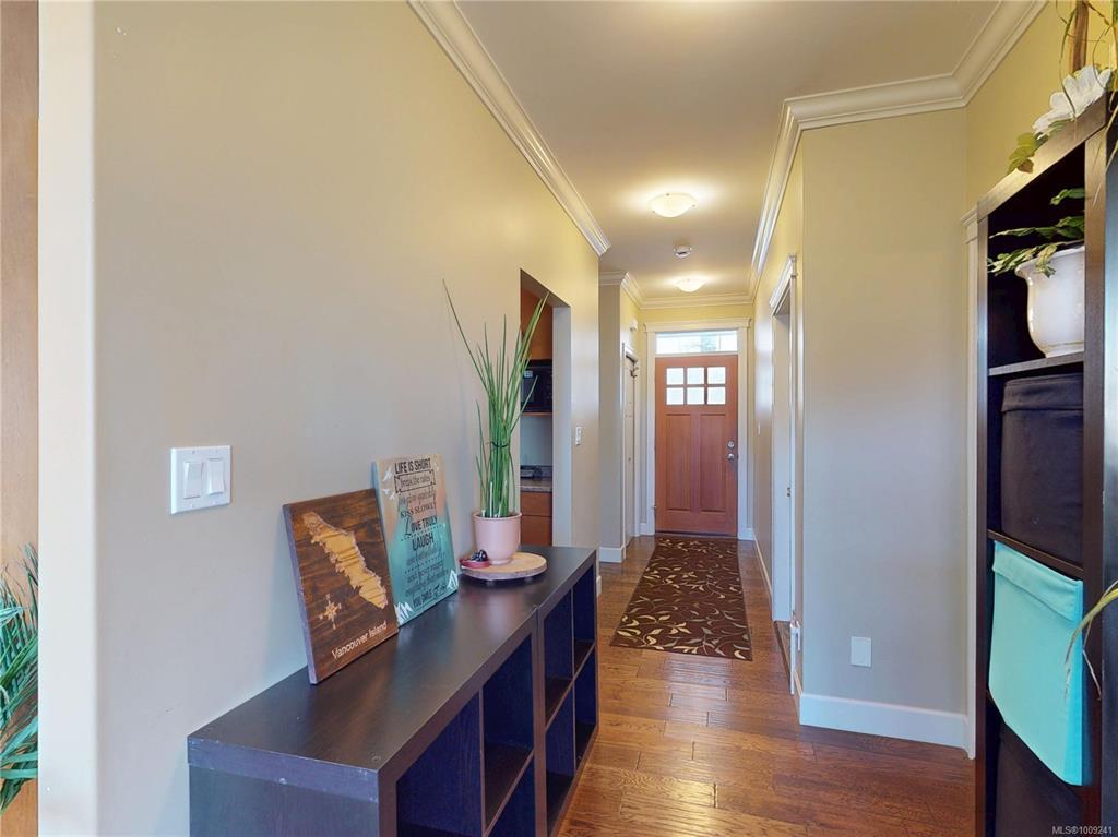 Welcome to Townsend Walk, one of Sooke’s most desirable townhome communities! Ideally located in the heart of Sooke, this development offers direct access to the municipal trail system and is just a short stroll to local schools and parks. As you enter, you'll be greeted by a charming covered front porch. Inside, this spacious 3-bedroom, 2.5 bathroom townhome features a bright and open design that’s perfect for modern family living. The 9ft ceilings and engineered hardwood floors enhance the generous great room, which includes a large kitchen, cozy living room and dining area with a door leading to the rear patio and a private, low-maintenance fenced yard. Main Floor Den as well! With an attached single garage and additional driveway parking, this home offers both convenience and style. It’s the perfect choice for those seeking quality, affordability, and easy-care living in a townhome setting.
