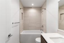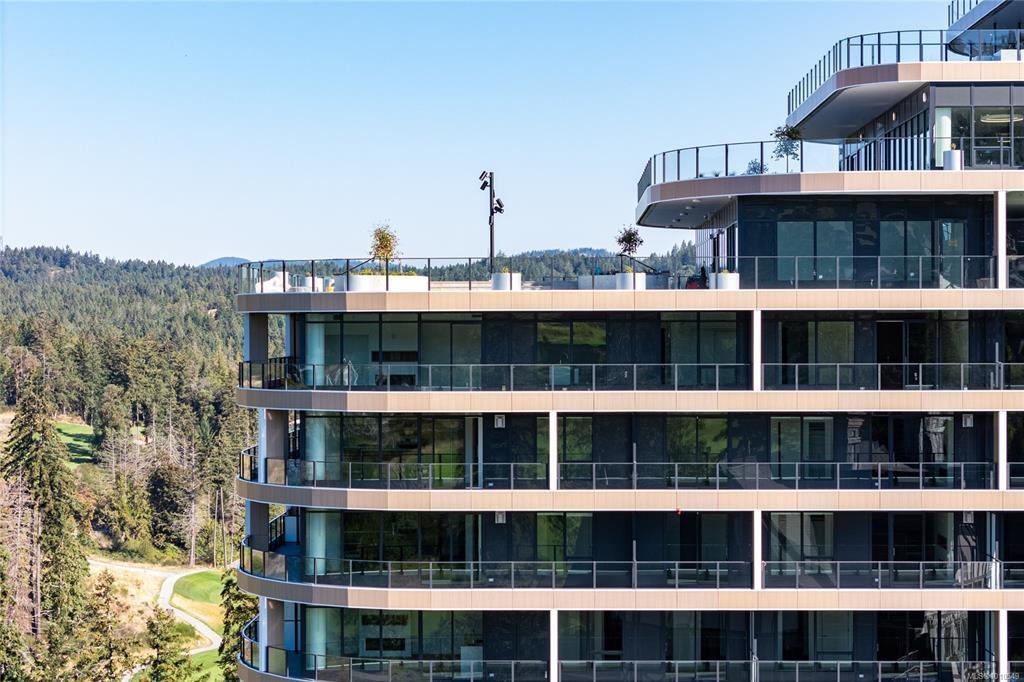 Welcome to One Bear Mountain, a new steel and concrete masterpiece situated on world-renowned Bear Mountain Golf Resort. Featuring 947 ft² of interior living space, this sun drenched 2 bed/2 bath home captures stunning views of the 18th fairway and mountains beyond. Seamless indoor-outdoor living is created through a 248 ft² private patio, perfect for year round enjoyment. Step inside to a designer kitchen fitted with 2-tone Italian cabinetry, quartz counters, large island and SS Bosch appliances. Wood floors sprawl into the living room, boasting gas fireplace and outdoor access. Into the primary suite, a large walk thru closet leads to the sumptuous 4P ensuite with heated floors. Another large bedroom and addt'l 4P bathroom finish this gorgeous suite. Other bonuses include in suite laundry, secure parking and storage, and amazing amenities like an outdoor pool, sky lounge, yoga studio and fitness centre, business centre, and outdoor terraces with fire pits. Very competitively priced.