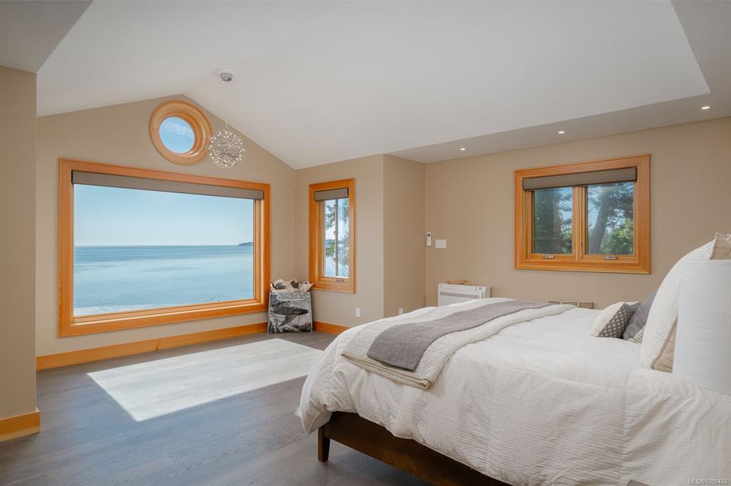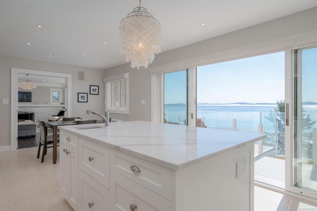 Embrace the pinnacle of coastal living in this breathtaking Cordova Bay waterfront residence with panoramic ocean and Mount Baker views. A dramatic two-story vaulted grand foyer welcomes you to a world of refined elegance, with rich edge grain fir details and an elevator connecting all three levels. The main floor is an entertainer's dream, boasting a gourmet kitchen with premium appliances and a stunning Calacatta quartz slab. Sliding French doors open to an expansive limestone deck with frameless glass railings and endless views. The upper-floor master suite is a private haven, featuring a cruise-ship style windowed wall and a lavish "his and her" ensuite spa. The lower level features a self-contained 2-bedroom suite, ideal for guests or as a premium rental. This is more than a home; it’s a lifestyle. To experience this extraordinary waterfront property, please contact us for a private viewing.