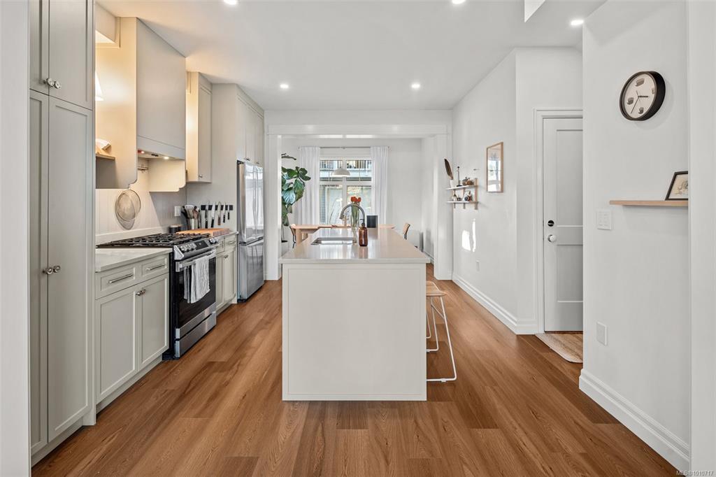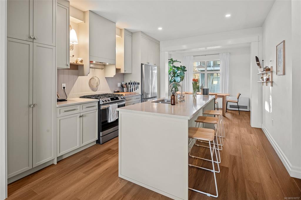 2 level Townhome tucked away on a tree lined street, in family oriented Neighbourhood near the Gorge Waterway. This stunning corner unit offers 4 spacious bedrooms & 3 bathrooms. As you enter, you’ll be greeted by a beautifully designed open main floor that boasts full-sized living & dining rooms—perfect for both everyday living and entertaining. Your dream kitchen features shaker-style cabinetry, a pantry, and premium appliances, including a gas range and countless other thoughtful details making this kitchen as functional as it is stylish.