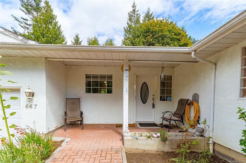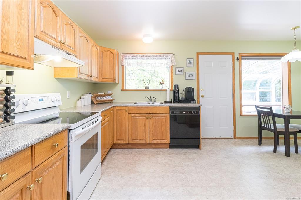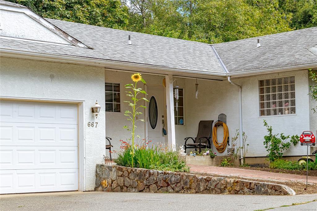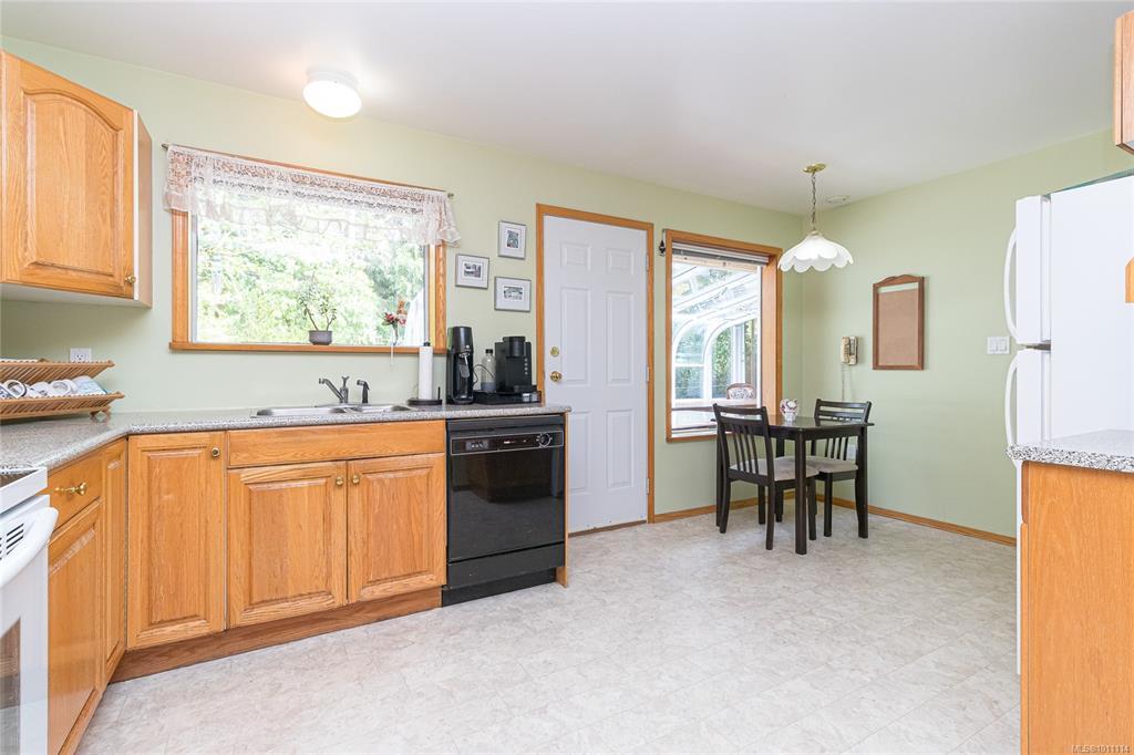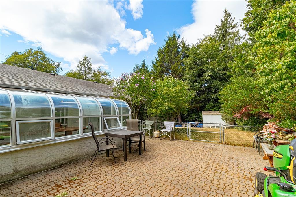 Over an Acre in Langford! This unique and private rancher is nestled on a spacious lot offering over an acre of land — complete with RV parking and plenty of room for all your toys. Inside, you'll find a bright open-concept kitchen wth eating area, seperate dining room, a generous primary bedroom with a walk-in closet and ensuite, and a spacious second bedroom with its own full bath. Enjoy the convenience of in-floor heating, a sunroom for year-round relaxation, and a double garage with ample additional parking. Sewer is at the lot line. The easy-care lot makes maintenance a breeze, and the location can't be beat — just minutes to all amenities with quick access to the highway. A rare find in Langford — don't miss it!