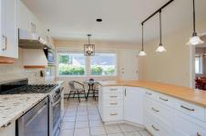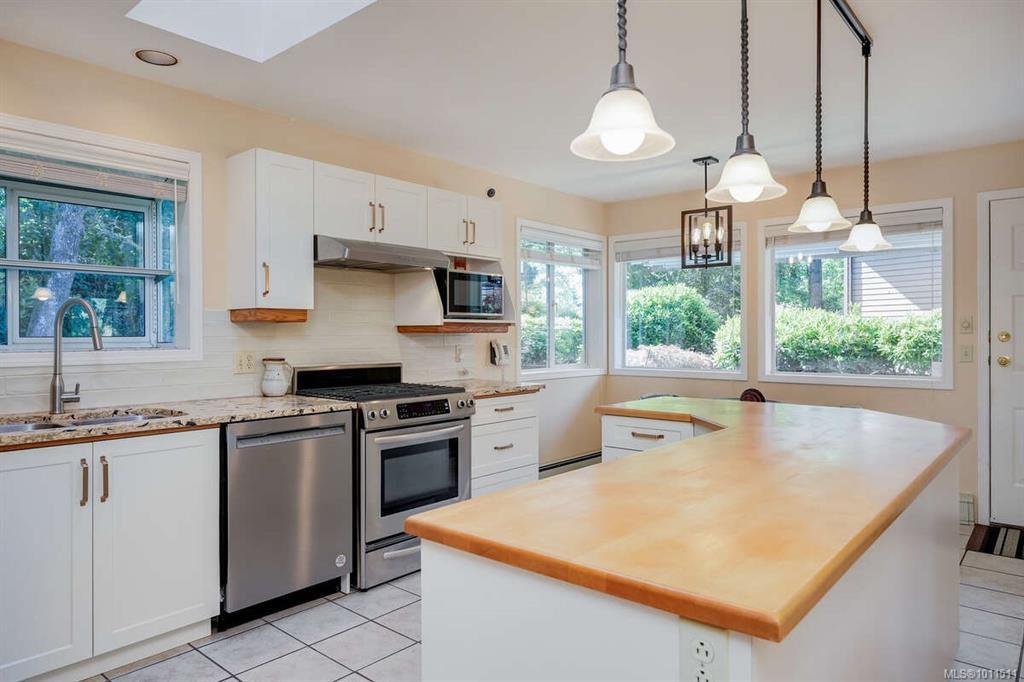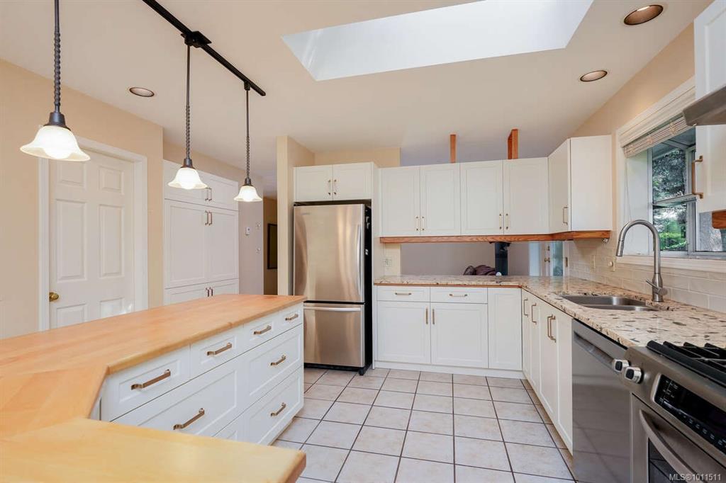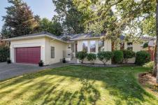 This beautifully designed 3-bedroom, 3-bathroom rancher is tucked away at the end of a quiet cul-de-sac and has been meticulously maintained by its second owner. Perfectly situated just a short walk from Broadmead Village, public transit, and quick highway access, this home combines comfort with convenience. The spacious, light-filled kitchen overlooks a private backyard retreat featuring a fully fenced yard, low-maintenance gardens, and a covered patio—ideal for year-round enjoyment. Additional highlights include a large double garage with over-height ceilings, an expansive crawlspace for extra storage, 200-amp electrical service, and ample visitor parking. Pride of ownership is evident throughout, with numerous thoughtful upgrades that add both value and peace of mind: exterior professionally repainted, gas heating (2023), kitchen remodel (2020), HVAC (2019), expanded patio with motorized awnings (2018), updated powder room (2017), skylight and roof (2014), front entrance canopy