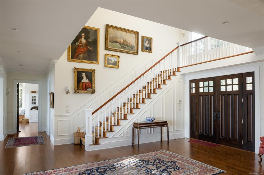 Welcome to 2600 Queenswood Drive, an oceanfront retreat nestled on nearly 2.8 acres in one of Vancouver Island’s most prestigious enclaves. Gated & private, with the potential to subdivide, this estate offers panoramic views of the Haro Strait, Gulf Islands, and Mt. Baker. The Hamptons-style residence blends classic East Coast charm with West Coast ease, featuring more than 6,000 sqft of living space. Soaring ceilings, expansive windows, and a seamless connection to the outdoors define the main level, which includes a sophisticated living room & dining area, a hand-built Walnut library & a chef’s kitchen designed for both function & flair. The main level primary suite is a true sanctuary, while the upper level offers 3 additional bedrooms, 2 with ensuite. A walkout lower level includes a flexible studio. Lush landscaping, stone pathways, a private launch point for kayaking & a detached 3-car heated garage complete this rare seaside setting—just minutes to Cadboro Bay Village and UVic.