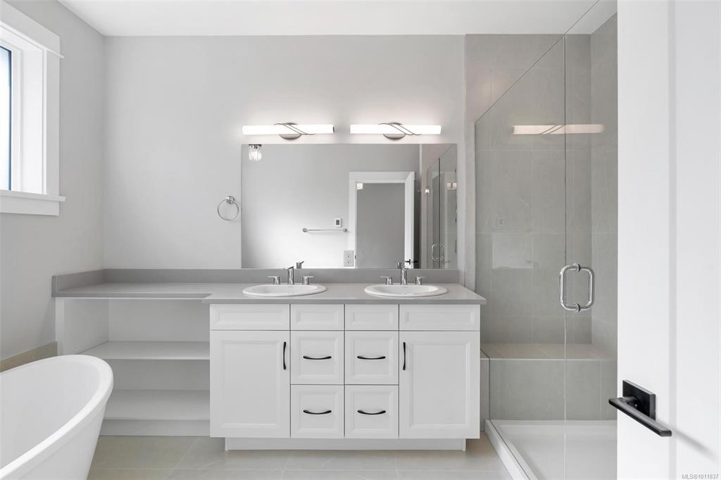 OPEN HOUSE SUNDAY AUGUST 24TH 1-3PM. BRAND NEW 6 Bedroom, 3 Bathroom home offering over 3,100 finished sq.ft in Mill Bay. Sitting on an impressive, sunny lot in a new subdivision of 29 future homes & backing onto Sentinel Ridge with some ocean views! Main floor features a gorgeous chef's kitchen w/ stainless appliances, large island for entertaining & walk-in pantry. Spacious living & dining areas plus access to the back deck, which leads down to the irrigated yard. 3 bedrooms including the primary suite featuring a spa-like 5 pce ensuite & walk-in closet. Lower level offers more potential with an office/6th bedroom off the grand entry, huge rec room, 2 additional bedrooms, 4 pce bath, roughed in 2nd laundry & separate entrance. Very efficient home w/ heat pump & on demand gas hot water. Double garage with additional driveway parking. Quality built home by Hidden Creek Construction, same builder as the adjacent 16 lot subdivision below. Another bonus...PRICE INCLUDES GST!