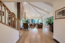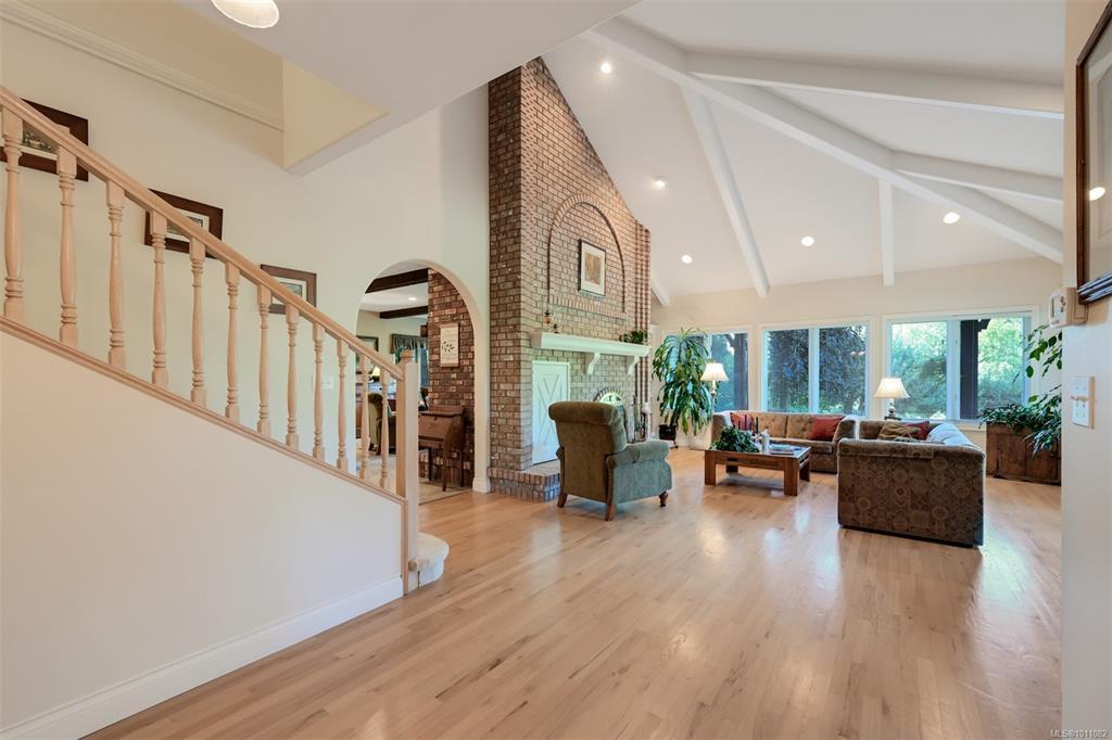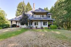 Peaceful, private country estate on 84 picturesque acres with large pond, rolling meadows, woodlands, and scenic trails. Up a long driveway, you're greeted by a beautiful stone and stucco home full of charm and quality craftsmanship. Large rooms, three fireplaces, soaring vaulted ceilings, and abundant windows invite in the natural beauty and tranquility of the surroundings. Manicured gardens, lawns, and fenced orchards with cherry, apple, pear, and plum trees. The upper-level primary suite is a serene retreat with a luxurious 6-piece ensuite, towel warmer, fireplace, huge walk-in closet, and French doors leading to a private balcony. Large recreation, family, and office/den spaces offer flexibility and comfort. Thoughtfully maintained with a new roof (2024), wood/electric heat systems, 2 heat pumps. Includes a 2-car attached garage, separate 1-car and 4-car garages, wood elevator, dance studio with reclaimed fir floors, chicken chalet, outbuildings, and fully fenced & cross-fenced.