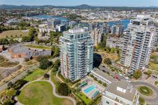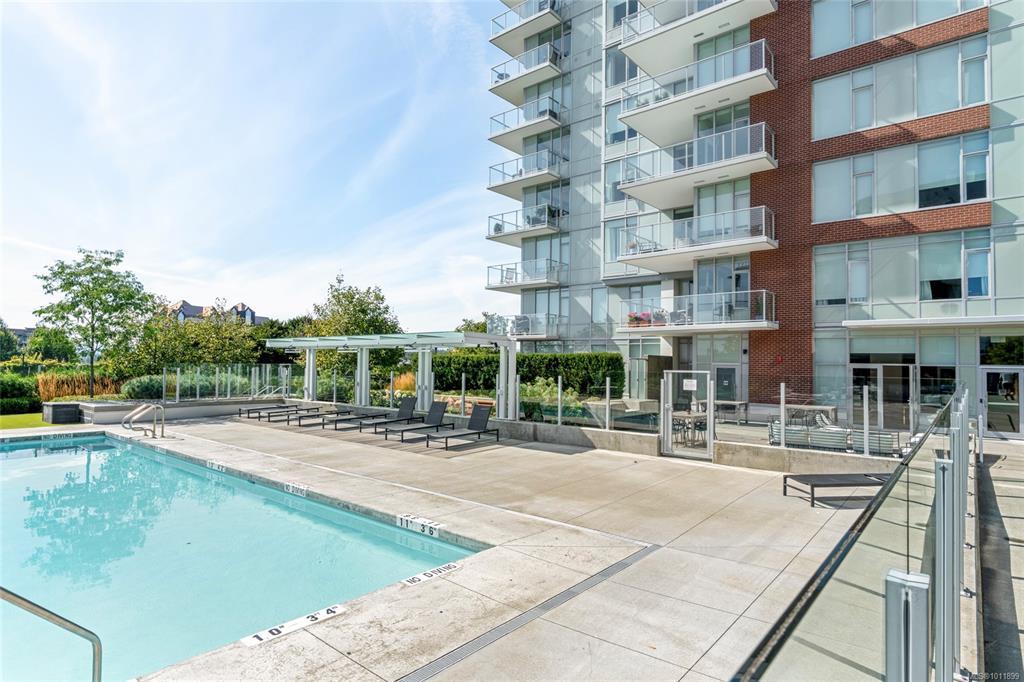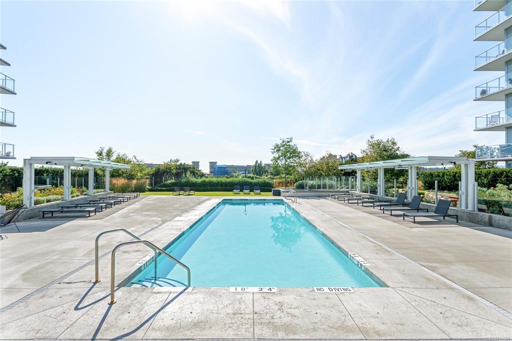 Welcome to the Encore at Bayview, where luxury and lifestyle meet. This spacious 2 bed, 2 bath condo offers 1,061 sq ft of modern living with high-quality finishes throughout. The open concept kitchen features sleek quartz countertops, stainless steel appliances, a gas cooktop, and ample storage. Bright and airy, the living space is enhanced by wide plank laminate flooring and large windows that flood the home with natural light. The spa-inspired bathrooms include tile flooring, quartz counters and contemporary fixtures. Enjoy incredible southwest exposure from both the living area and private balcony - perfect for soaking up the sun and taking in the views. The Encore is known for its exceptional amenities, including a fully equipped gym, outdoor pool with lounge areas, guest suite, bike storage, and inviting common spaces for entertaining. Ideally located in one of Victoria’s most sought-after neighbourhoods, this condo combines comfort, convenience, and resort-style living.