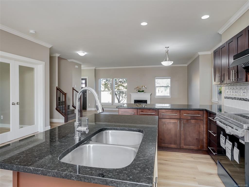 Well-designed functional floor plan. This 4 bedrooms 3 baths home offer generous room size with loads of natural light! Beautiful kitchen w/Quartz counters, mosaic backsplash & solid wood cabinets, open concept dining room & living room w/electric fp, french doors to family room & glass doors to the landscaped back yard. Extra space for parking up to 4 vehicles on quiet side of back alley. All new appliances as well as new Hot water tank. Primary bedroom, ensuite & walk in closet. Crown mouldings & U/G sprinklers make home a step above the rest. This Modern Arts & Craft style home is on a Flat Corner Lot, quiet street,a family-friendly environment with just a 2-minute walk away to the highly sought after Happy Valley Elementary, 4-5 minutes drive to Westshore Town Centre, while quick trips take you to nearby parks, lakes, and Witty’s Lagoon.