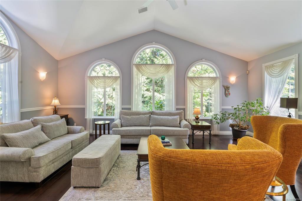 Welcome to this stately Colonial-style residence on 1.39 acres of manicured grounds in a prestigious estate setting. A gated entry leads to a private roundabout drive, courtyard, and oversized double garage w/ workshop space. Spanning 5,091 sq.ft the home offers 5 beds, 5 baths, a home office & bonus room. The grand 18’ vaulted foyer w/ classical columns & sweeping staircase makes a striking impression, leading to a 13’ vaulted living room w/ gas FP. The formal dining room is framed with elegant columns, while the kitchen adjoins the family room w/ coffered ceilings & French doors opening to partially covered custom stone patio that overlook the gardens — ideal for year-round entertaining. The primary suite is a retreat w/ spa-inspired ensuite & walk-in closet. A self-contained in-law suite w/ garden room, separate entrance & parking is ideal for extended family. Outdoors, enjoy walking paths, sun & shade patios, & a fenced vegetable garden, w/ newer roof & heat pump for peace of mind.