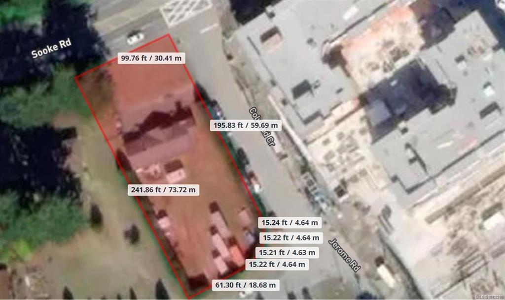 PRIME DEVELOPMENT SITE in Colwood Corners neighbouring new residential & commercial mixed use development opposite the prestigious Royal Colwood Golf course, positioned on the Transit Growth Corridor. ALL restrictive covenants have been REMOVED and site is now ready for your proposed development. This is the heart of Colwood with recreational facilities, shopping, arena, Galloping Goose trail, transit and Esquimalt Lagoon close by. The lot is 23,458sqft zoned R1 however the OCP is designated Colwood Corners permitting a maximum FAR of 4.5. The municipality is focusing the highest density along the Sooke Road, Goldstream and Wale Road corridor with recent approvals in excess of 30+ story buildings. The property offers approximately 195'83 feet frontage along Colwood Crescent and 99'76 feet frontage along Sooke Road with rear road frontage. NOTE: 3 to 4 story townhomes will not be supported by the municipality. The seller and his tenant will rent back at market rates for an agreed term.