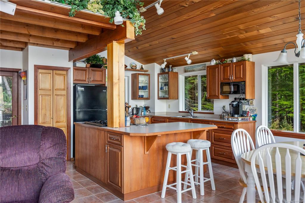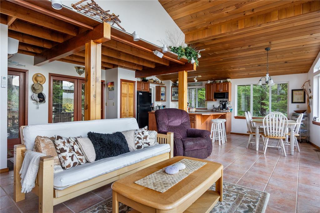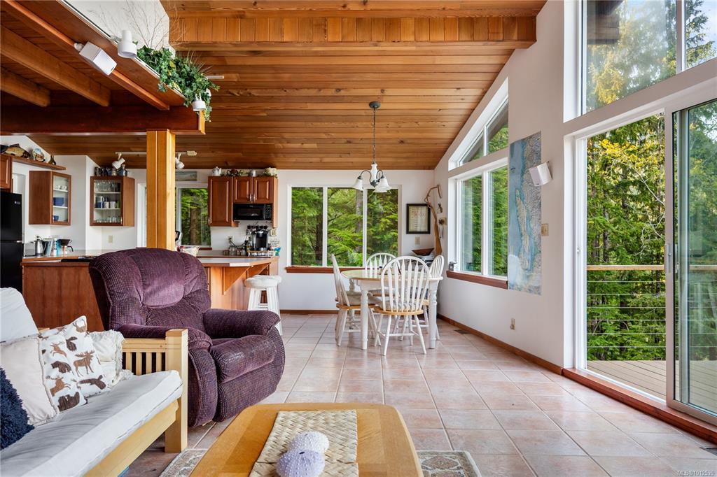 Private residence on Blind Channel; first time offered for sale since it was built in 1996. This 26 acre waterfront parcel, shared with 5 other owners, enjoys stunning ocean views, sunsets and sunrises from every room. The primary bedroom and 4 piece bathroom are found on the main. Upstairs you have two additional bedrooms and another 3-piece bathroom. For upgrades, there is a brand new roof, new wrap-around deck and a mini-split on the main for those warmer summer days. This property is accessed by marine or air (water taxi, boat, float plane, helicopter). Enjoy the island amenities that Blind Channel has to offer, with the Cedar Post Restaurant, fully equipped marina with power, water and a gas bar, and beautiful serene grounds with an old growth forest and multiple hiking trails. There is a utility room and storage room on the lower level of the home with two separate entrances; a walk-up staircase, or by golf cart or gator vehicle, right up to the main floor and primary bedroom.