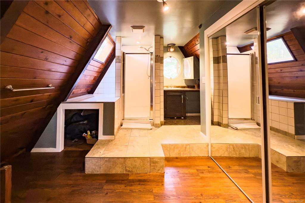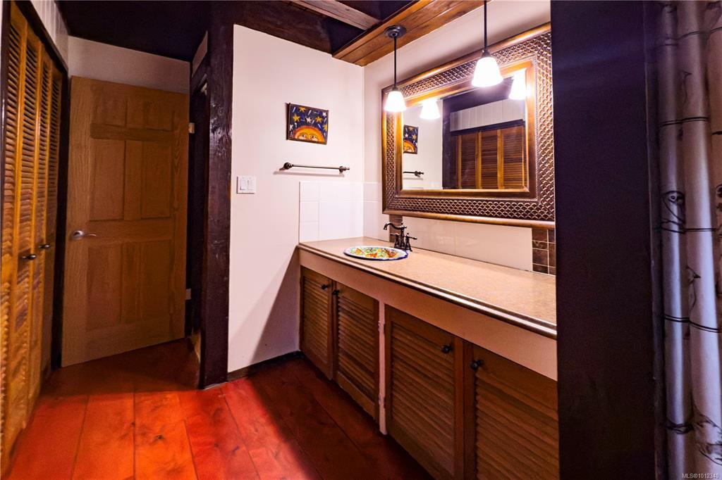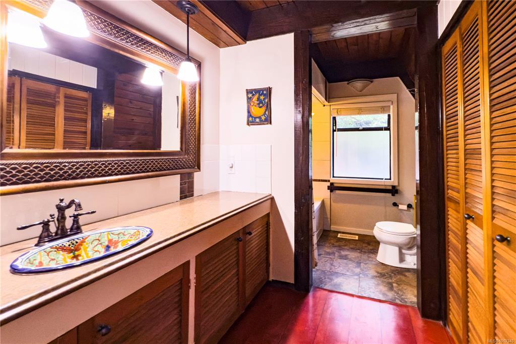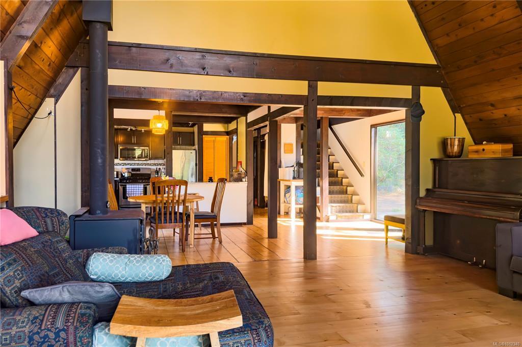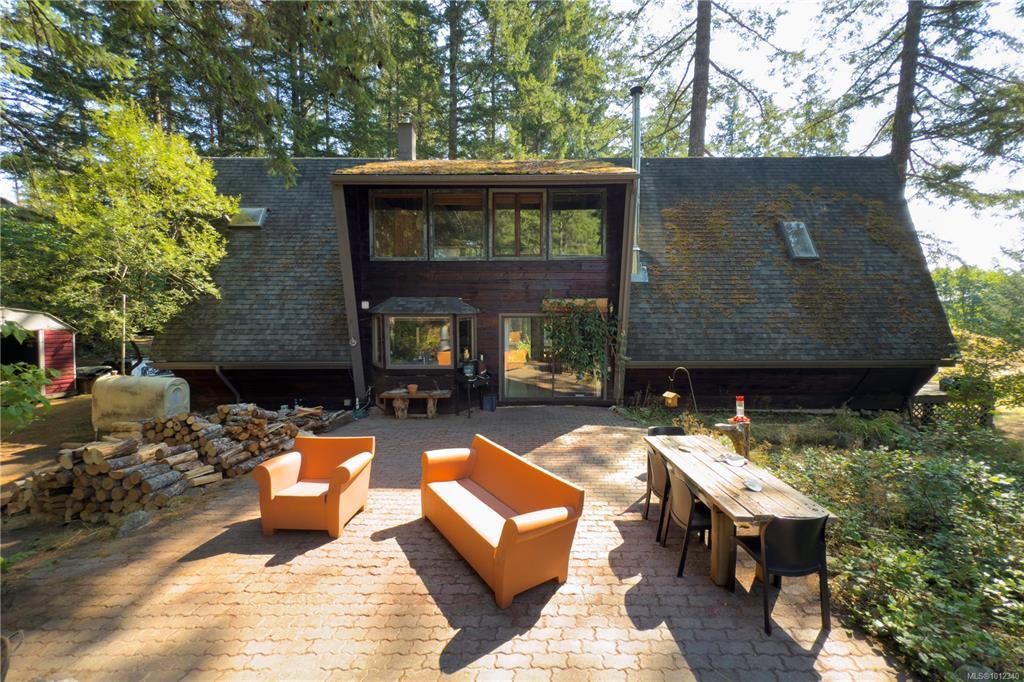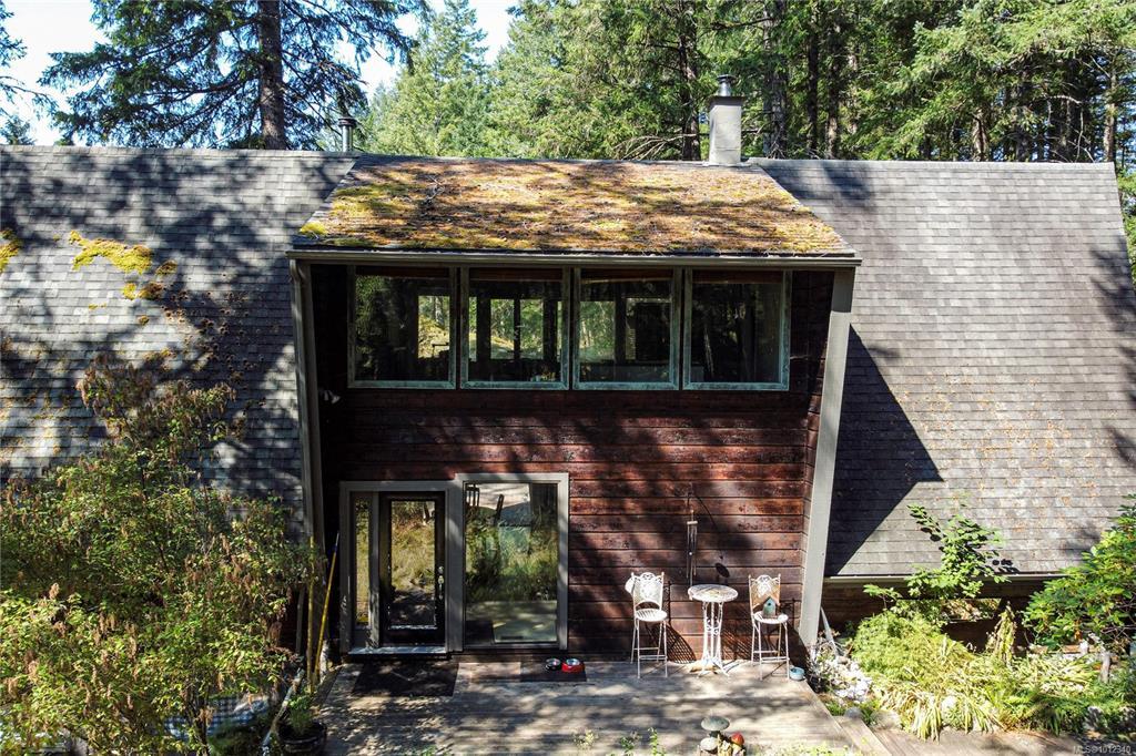 Tucked away in complete privacy, this rural 3-level home offers the best of seclusion and convenience. Set on a level bench of a mossy bluff that rises dramatically behind the house and yard, the property enjoys sweeping views across Quadra Island to the distant peaks of the mainland mountains. The kitchen is a standout, featuring an extra-deep counter and a bright bay window that frames forest and bluff views while flooding the space with natural light. From here, enjoy easy flow to outdoor living: sliding glass doors off the dining room lead to a spacious patio, while another set from the living room opens to a cozy covered deck. The primary suite is exceptionally spacious, complete with a sitting/reading nook, office area, and an ensuite that boasts both dressing and relaxation space. The home’s water supply is from a shallow well, treated with a UV light and filter. The long, wooded driveway winds into a circular drive with abundant parking, including room for an RV.