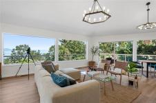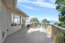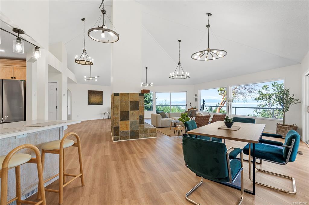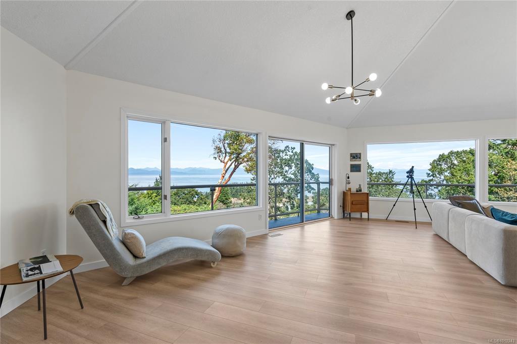 Perched on a rare 16,944 sq ft lot in Hammond Bay, this 3,242 sq ft 3 bed/3 bath home showcases stunning ocean views from nearly every room. The open-concept main level features 15-ft vaulted ceilings, expansive windows, and 700+ sq ft of oceanview decks. The brand-new kitchen boasts quartz counters, peninsula seating, and never-used appliances. The primary suite includes a walk-in closet, renovated ensuite, and private deck access. Downstairs offers a spacious family room, guest suite with ensuite, and walkout to the large backyard. Extensive 2025 updates ($180K+) include new kitchen, baths, appliances, PEX plumbing, flooring, paint, decks, and more. Added features: double garage, heat pump, built-in vacuum, and private yards. Conveniently close to schools, shopping, parks, ferry, and NRGH. A rare move-in ready home with space, style, and unmatched ocean views in one of Nanaimo’s most desirable neighbourhoods