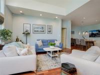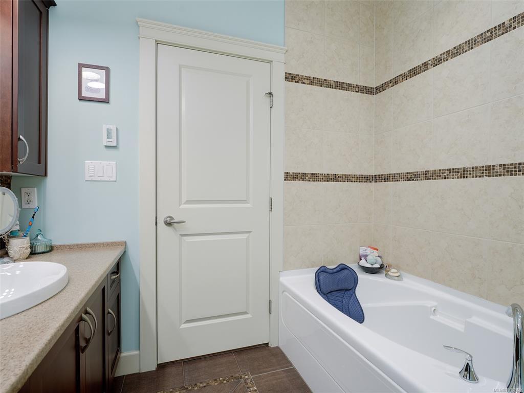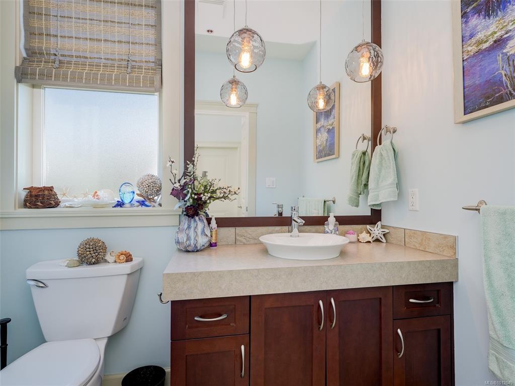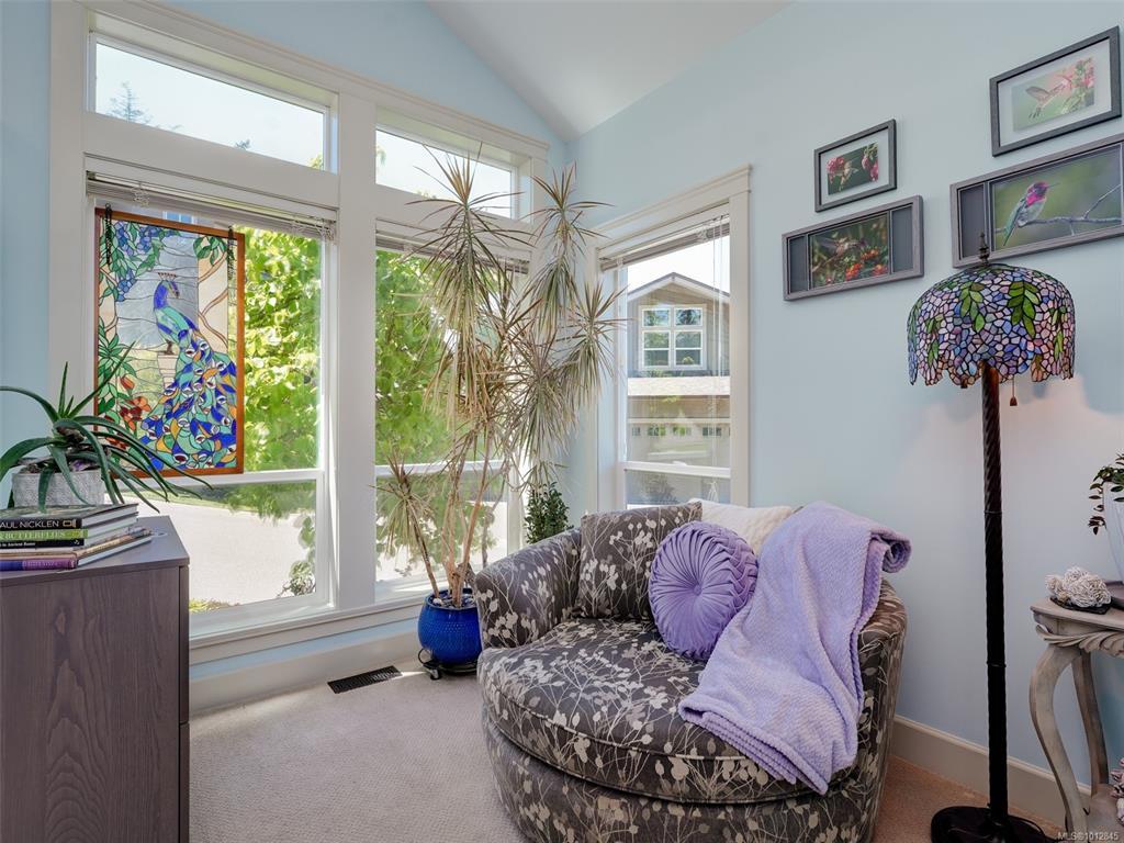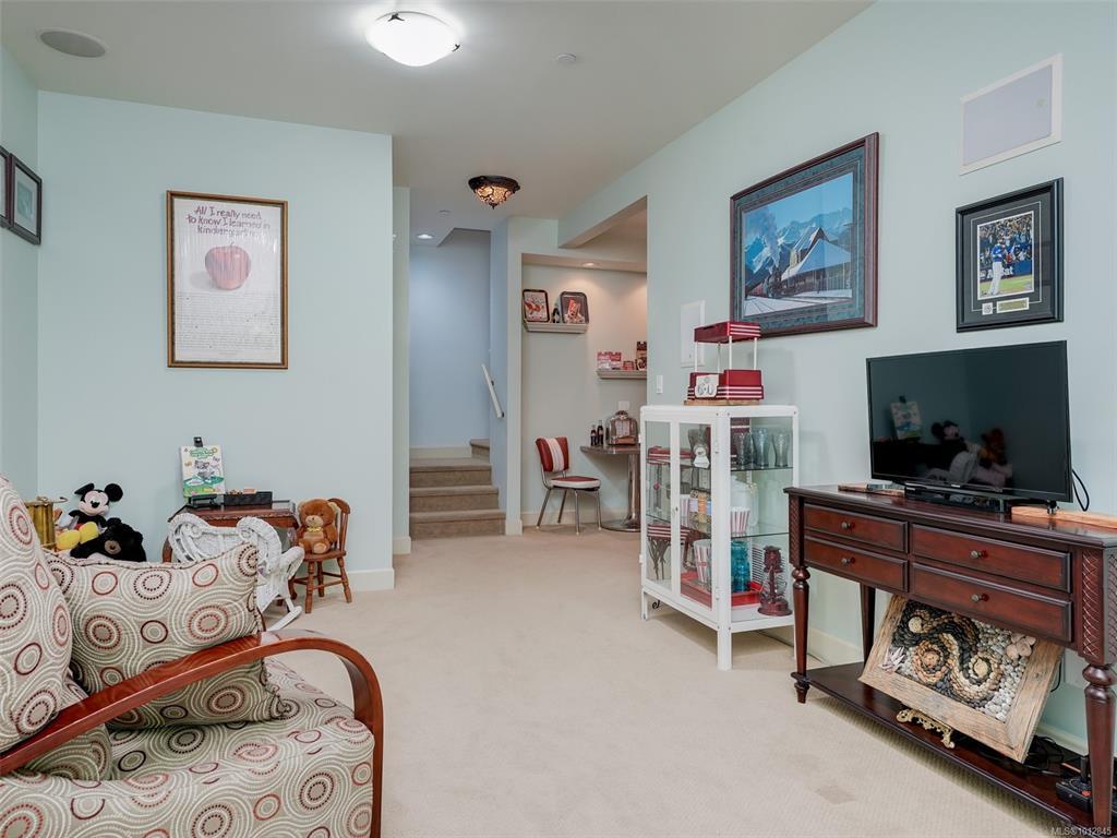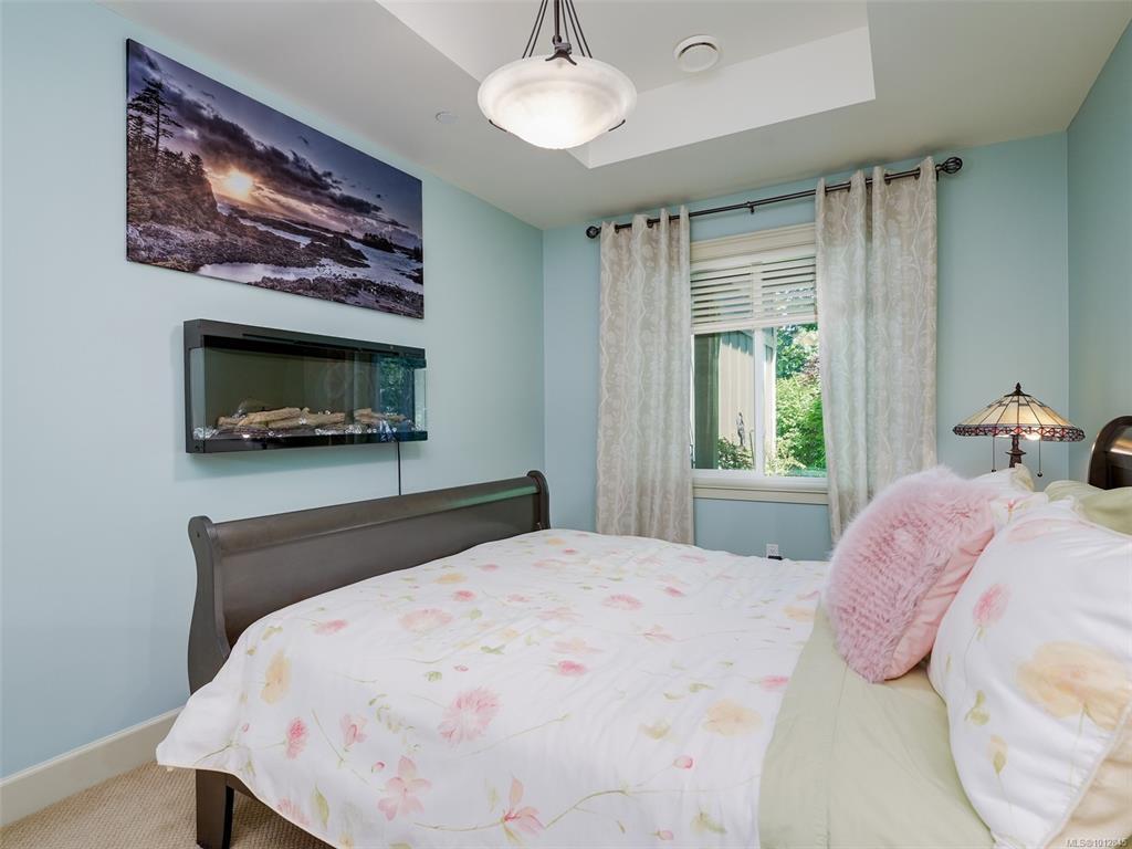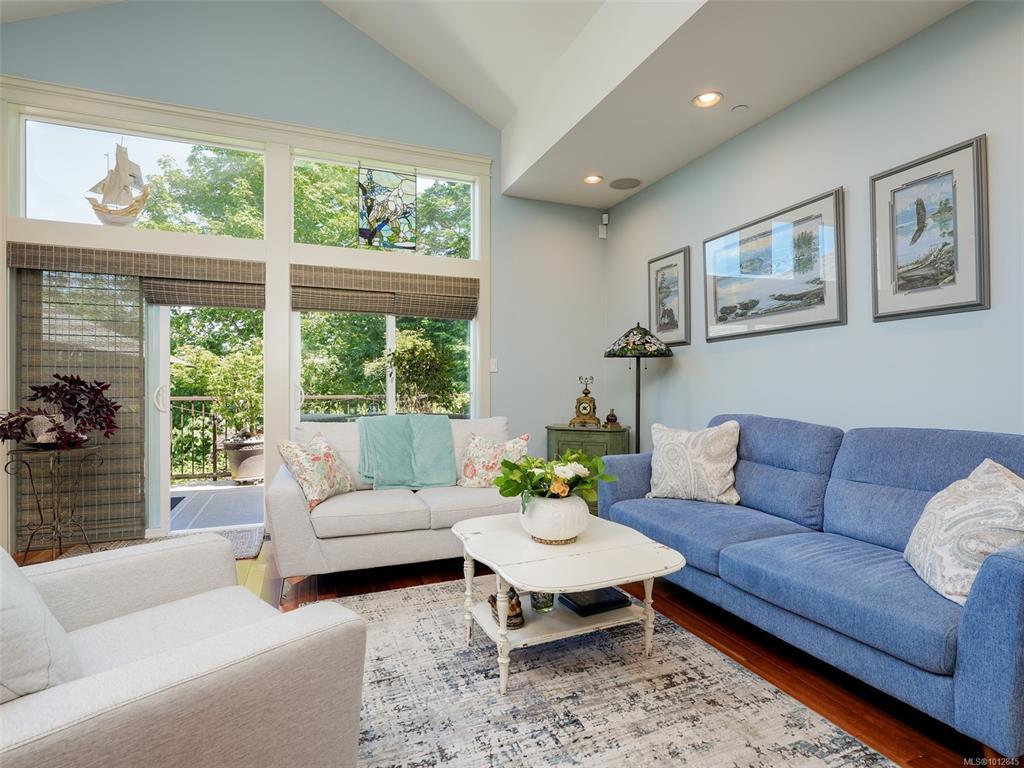 Discover the beauty of Madrona Creek, a stunning gated community backing onto a park-like oasis. This beautifully updated 2,242 sq ft end unit townhouse features true main floor living along with a full walk-out lower level. You'll love the open floor plan with bright kitchen & living room, floor-to-ceiling windows & large sliding glass doors that lead to a huge deck surrounded by greenery. Recent updates include a modern kitchen with SS appliances including a gas range, all new light fixtures & paint throughout. The main floor also includes a graciously appointed primary bedroom & ensuite, a no-step entry from a double garage, laundry & an office at the entrance. The lower floor boasts two large bedrooms, a huge Family Room & a separate Yoga space & steps out to a large patio with footpaths through the foliage. Additional laundry and sink hookups downstairs. Madrona Creek is a short walk from trails, biking routes, golf courses & beautiful beaches.