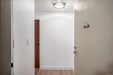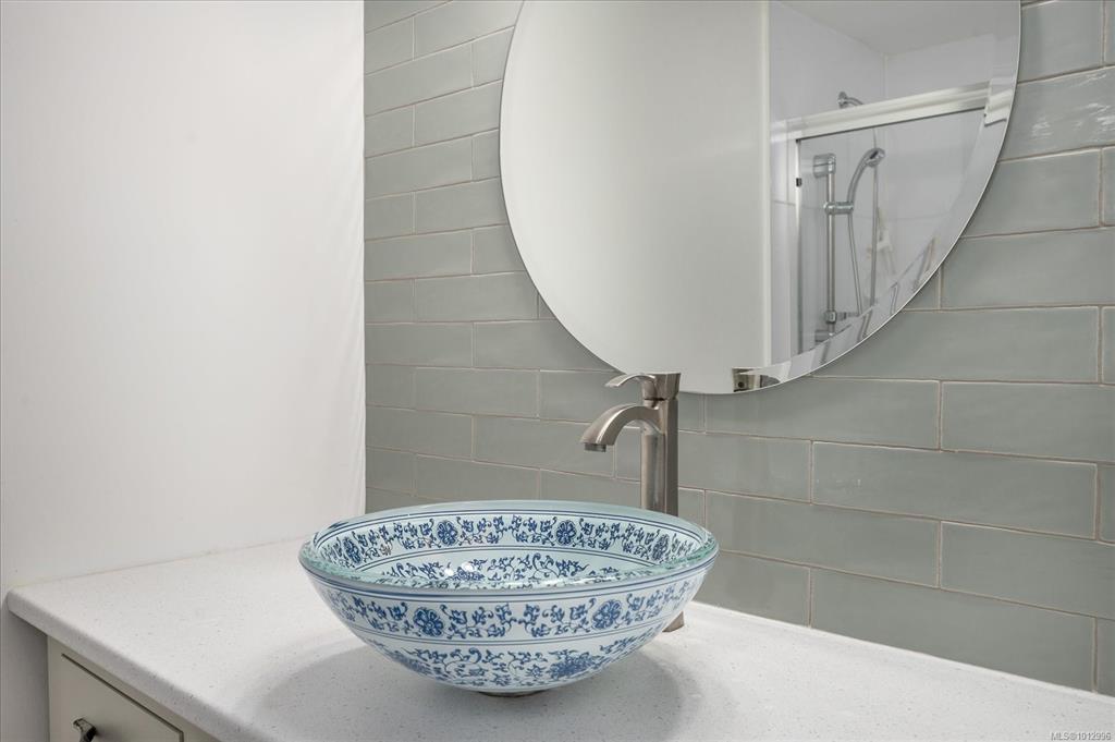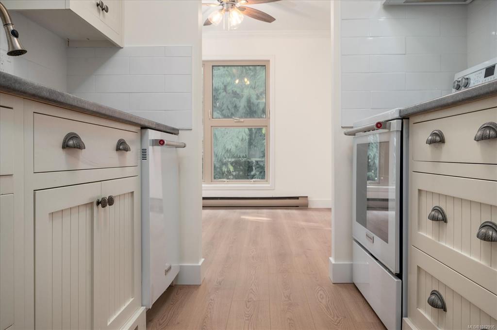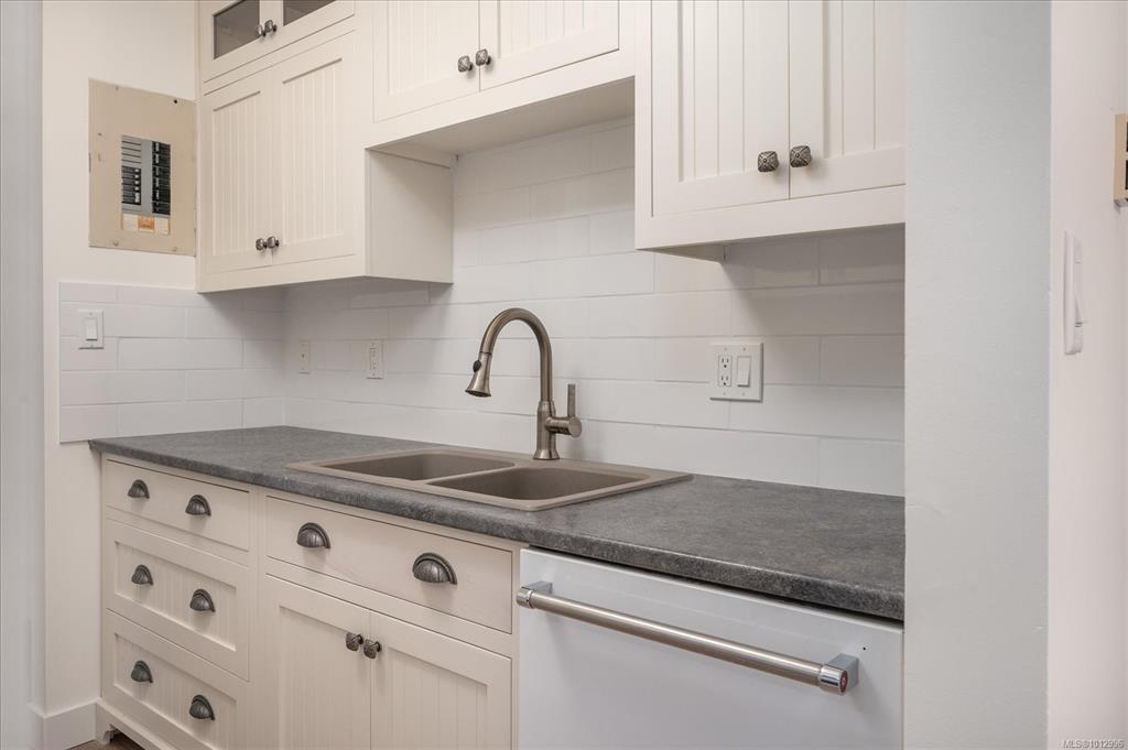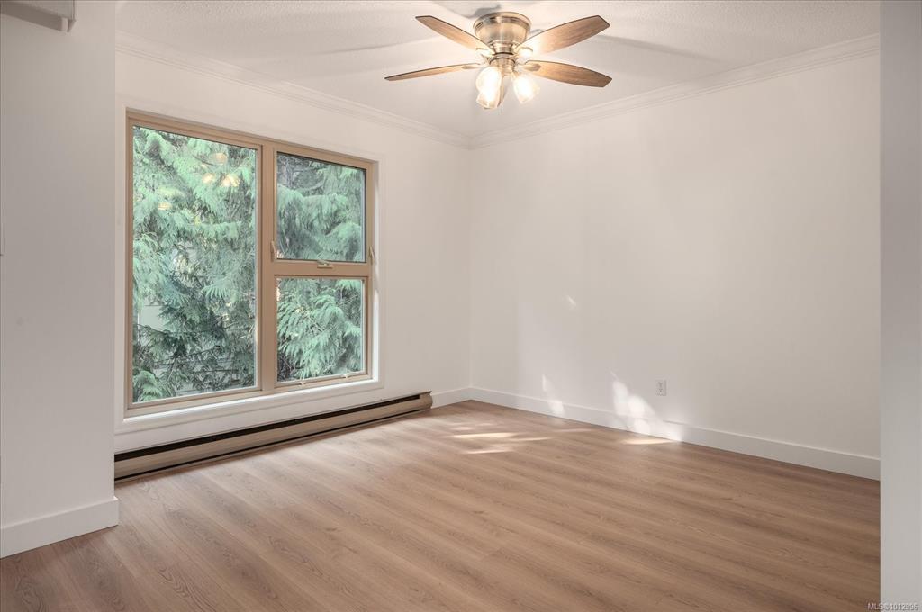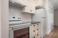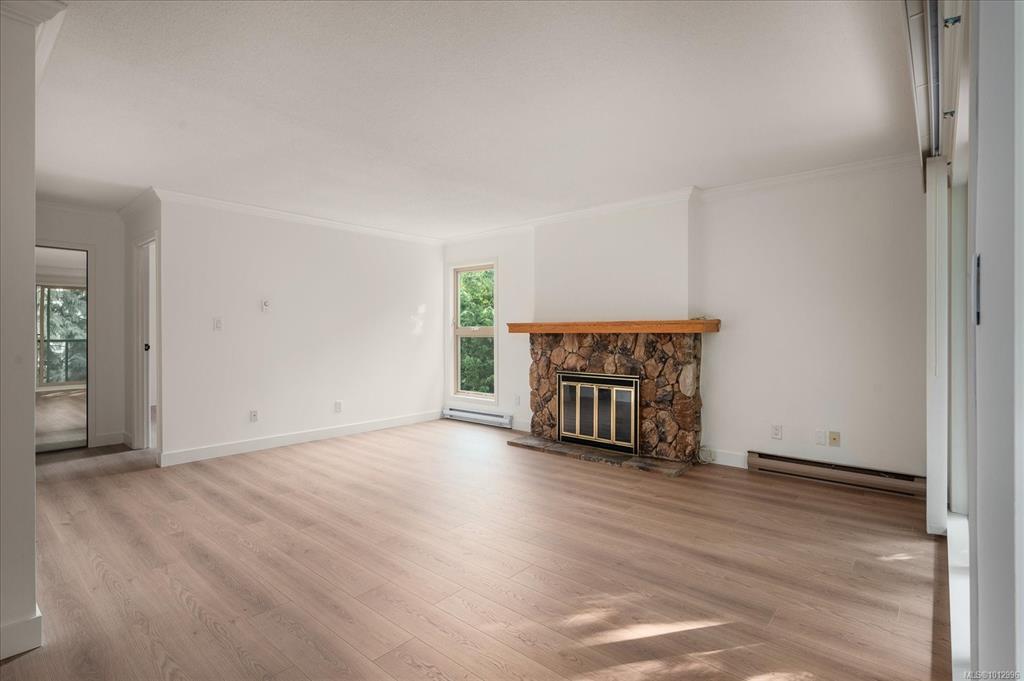 Stylish, spacious & updated, this 2-bed/2-bath top floor, corner condo blends comfort, convenience & privacy. The well-appointed kitchen has quality appliances inc. new fridge, custom cabinetry & ample storage, opening to the adjoining large dining & living rooms w/ lovely fireplace feature ready for an insert. A covered balcony enjoys a tranquil, treed outlook for added privacy. The large primary bedroom is a true retreat w/ double closets & renovated ensuite, while the second bedm & main bath with barn door add style & functionality. Highlights incl: new flooring & fixtures, newer interior doors, crown mouldings, fresh paint, expansive windows, in-suite laundry, large storage room & storage locker & underground parking. This quiet, pet-friendly building has energy-efficient upgrades (windows, siding, balconies) & a newer roof add value & peace of mind. Don't miss out on this fabulous condo within walking distance to shops, restaurants & the seawall! Data approx--verify if important.