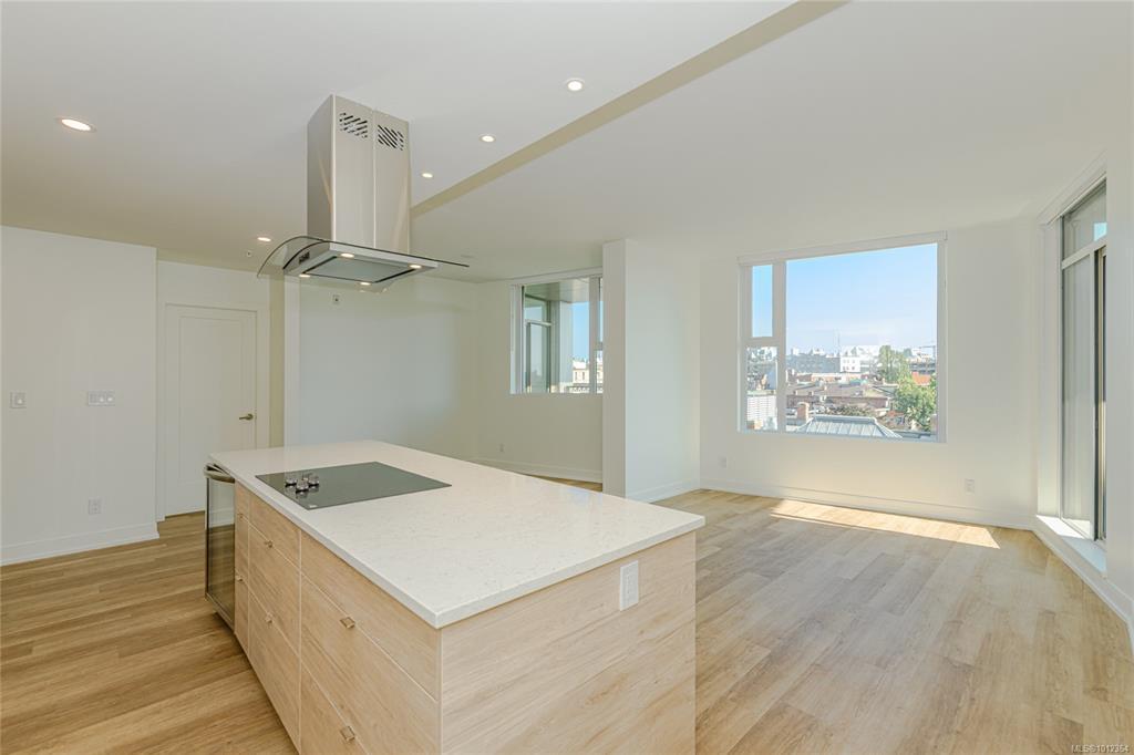 Welcome to the Pearl Residences, a premier boutique style waterfront steel & concrete building located in the heart of Victoria's vibrant & historic Old Town district. This bright open-concept 2 bed 2 bath unit features large windows to take in the city views. Inside you'll find 9 ft ceilings, a contemporary kitchen with a light colour scheme, high-end S/S appliance package, quartz countertops, in suite laundry, central air heating/cooling for comfort, and radiant floor heating in the bathrooms. Each bedroom has direct balcony access, walk-in/through closets, and spa-inspired bathrooms. GST INCLUDED. Enjoy the utmost privacy of being one of only two units on this floor. With tandem parking for two, storage, bike storage, a fitness facility, kitchen equipped amenity room and pets allowed, this unit will have you ready to live the ultimate luxury downtown urban lifestyle!