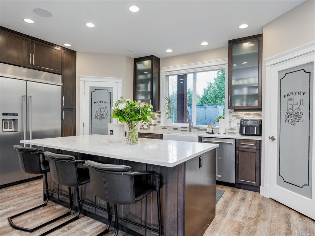 FLAT 2.47 Acre fully fenced property with a 4100+ sqft custom built main level living home & 6 bay workshop + 1 bedroom SUITE. REQUEST FEATURE SHEET! Enter inside your 8’ front door with tall windows throughout bringing in ample natural light. The kitchen has high end appliances, island & two pantries! Primary bedroom is on the main with walk-in closet & spa like ensuite including fully tiled walk-in shower with multiple shower heads, heated floors (in every bath), & claw foot bathtub! N-Gas supplying Stove, BBQ, Fireplace, Hot Water on Demand & a Generator. On either end of the home there are upper levels perfect for children/teenagers with 2 beds, a massive den/play area as well as a full 4 piece bath. Opposite end offers open family room with storage and a full bath. 2 car garage connected to main home. From the living room your French doors lead you out to your beautiful covered patio with a vaulted roof, massive chandelier, gas fire place, BBQ area roughed in for out door kitchen
