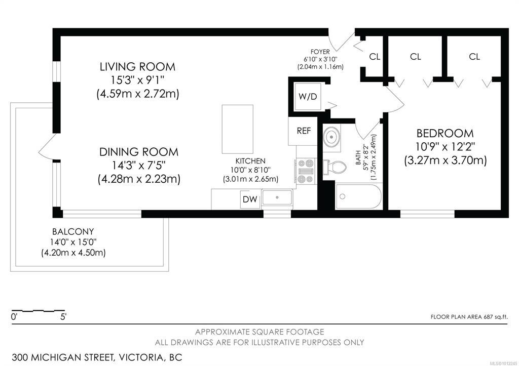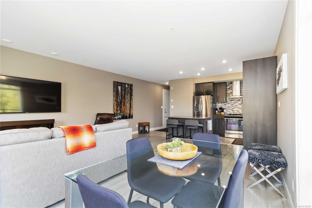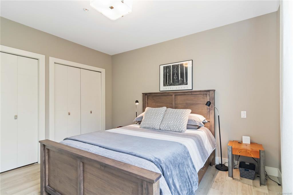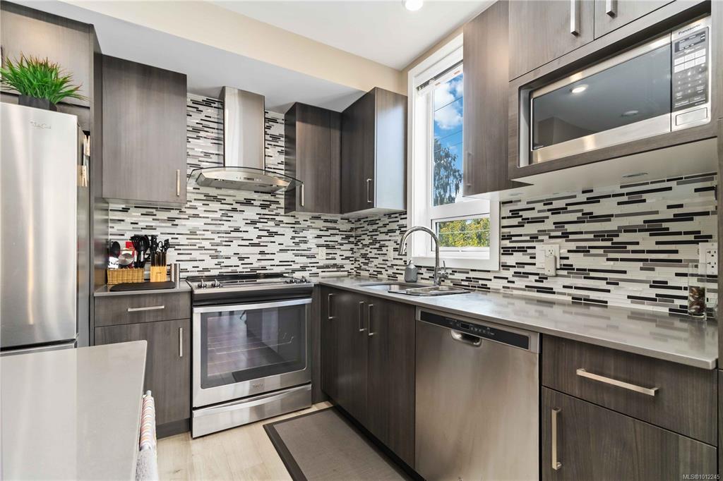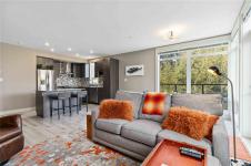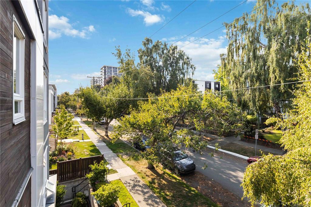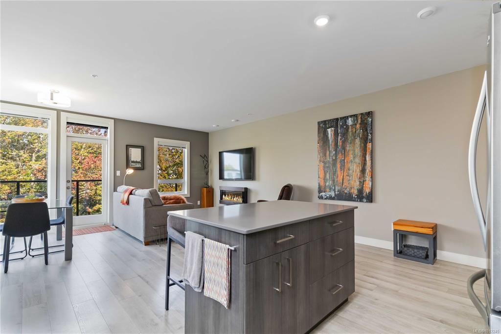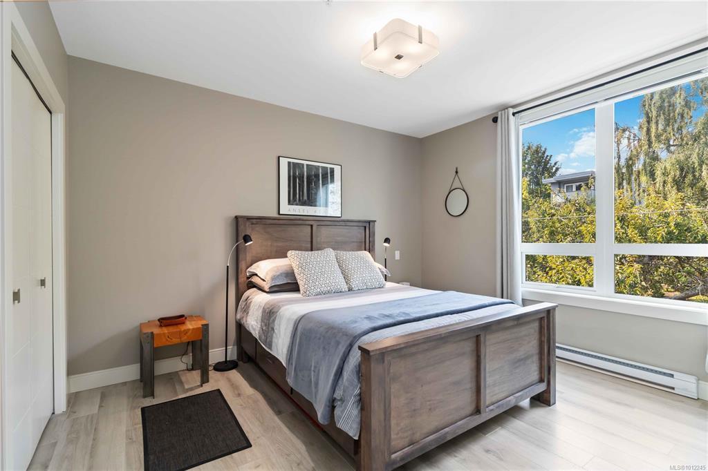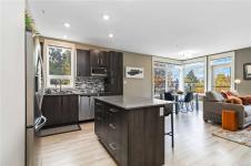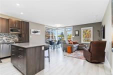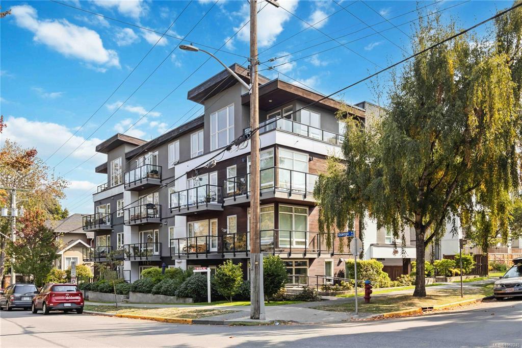 Welcome home to a like-new 1 bedroom corner condo in coveted James Bay, set on a quiet, tree lined street in a 2016 building. This southwest corner home offers approx. 718 sq ft, floor-to-ceiling wrap-around windows, and a large balcony that soaks up afternoon sun, so the living room feels airy and bright. The cook's kitchen has an island and pantry, quartz countertops, stainless appliances, and soft close drawers and the engineered flooring adds warmth. The high end bathroom features heated tile floors & there is in suite laundry for easy living. The spacious primary bedroom includes two generous closets. Secure underground parking & separate storage are included. Wheelchair ramp access, a patio area, & a common garden with herbs, flowers, and vegetables enrich daily life. You are close to the Inner Harbour, Dallas Road, and Fisherman's Wharf, therefore Victoria is on your doorstep. A small, proactive strata welcomes rentals and pets of any size. Book your private viewing today!