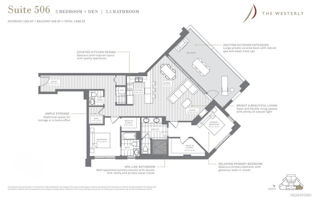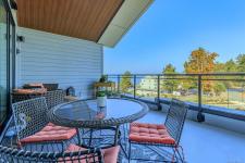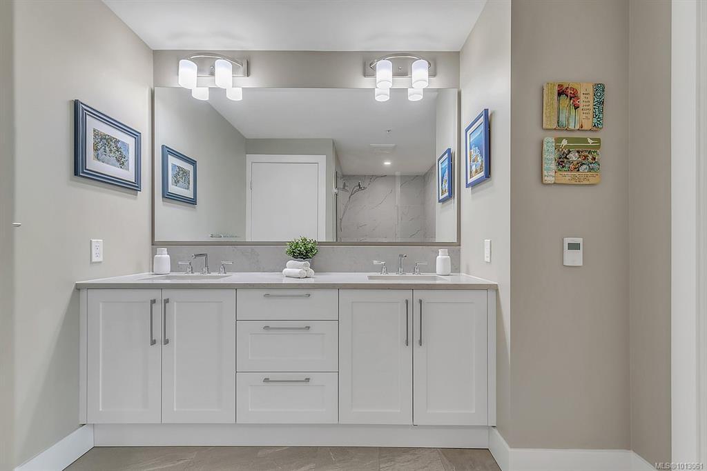 Live the West Coast lifestyle at The Westerly in Fairwinds. This 2 bdrm, 3 bath suite offers 1,342 sq ft of modern design, built in 2021 with exceptional quality, corner unit & no neighbour above! The open layout features 9’ ceilings, an NG fireplace, NG stove, high end appliances, walk in pantry w/custom shelving & in-suite laundry. A luxury patio with vaulted ceiling provides the perfect spot to take in the sweeping ocean views. Both bdrms come complete with walk-in closets w/custom shelving & ensuites, the primary showcasing a dbl vanity, heated floors & a massive walk-in tiled shower. Extras include a secure underground parking stalls, a storage locker & bike storage. The Westerly’s concrete construction, superior windows & soundproofing ensure peace & privacy. Located steps from Fairwinds Landing, Nanoose Bay Café & the Marina, with the Wellness Center & Golf Club just minutes away. Only 20 min from Nanaimo, this home offers the perfect blend of luxury, convenience & tranquility.