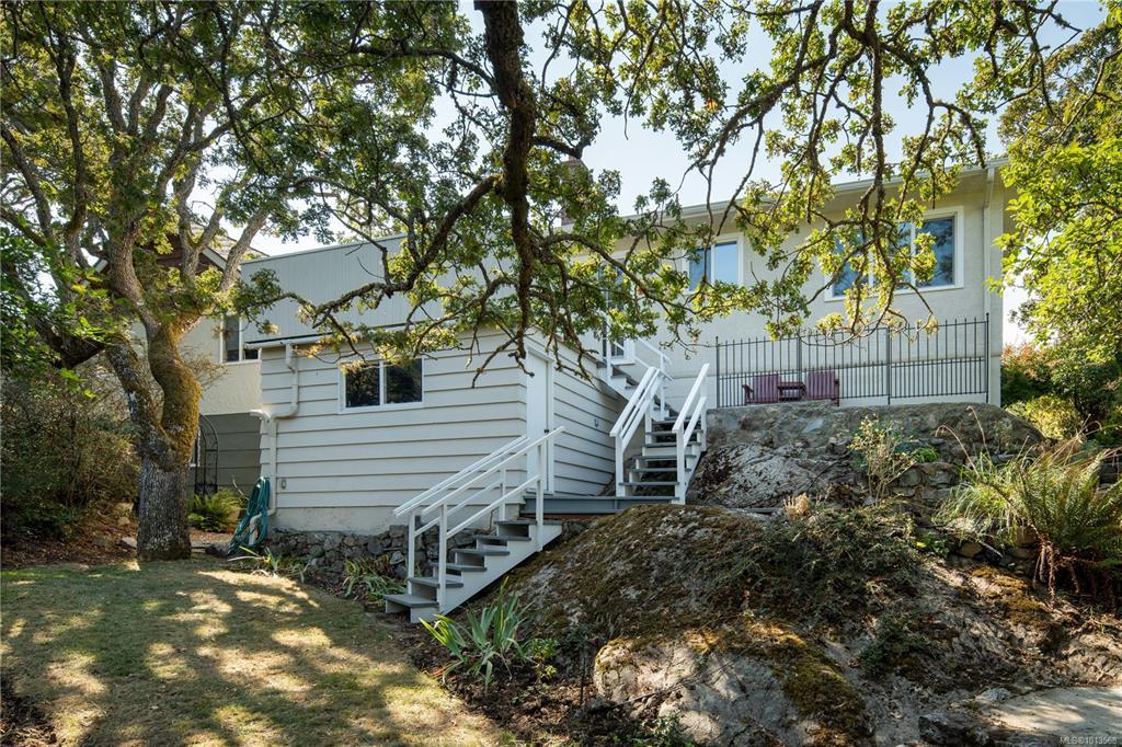 Welcome to 1697 Yale Street, a charming rancher tucked away on a quiet tree-lined street in sought-after North Oak Bay. This 3-bedroom, 2-bathroom home offers 1,266 sq. ft. of bright, well-designed living space with timeless updates and classic character. A welcoming living room features a cozy fireplace and large windows, flowing into the dining room with built-in cabinetry. The kitchen is thoughtfully laid out with stone counters, stainless appliances, and access to a sunny deck overlooking the private yard. The primary bedroom includes a 3-piece ensuite, while two additional bedrooms share a full bath. Outside, lush mature landscaping surrounds the property, complemented by rock walls, pathways, and tranquil garden spaces. A single garage, laundry room, and ample storage provide convenience. Located steps from Oak Bay avenue. Mins to Willows Beach, Estevan Village, schools, and parks, this home is ideal for those seeking one level living in Oak Bay.