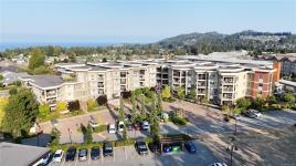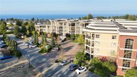 One of the largest ocean-view corner suites in this premier North Nanaimo condo development. This bright 3 bedroom, 2 bathroom home features an open-concept kitchen, dining, and living area with a cozy fireplace and expansive wall to wall windows. Building amenities include an elevator, gated underground parking, and a separate storage locker. Pet-friendly (one dog or cat permitted) with no age restrictions. Conveniently located near shopping, schools, Costco, and the beach. A rare opportunity to own a spacious condo with stunning views in one of Nanaimo’s most desirable locations. All measurements and data are approximate; verify if important.