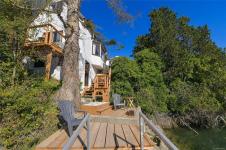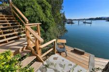 Enchanting two-acre waterfront, complete with its own private dock, stables, cottage, & orchard. Steeped in history and brimming with potential, this property offers endless possibilities. Subdivision potential or enjoy a serene private oasis.The moment you arrive, you'll be captivated by the English country charm of the architecturally designed home. Crafted by renowned architect Hubert Savage for the Tryon family in 1934, the house sits proudly on a southern bluff, offering interesting water views. Step inside and imagine the stories this home could tell of wonderful social gatherings and cherished family moments. Lovingly maintained by the same family for 50 years, a perfect setting to expand your life and bring your creative projects to life.The outbuildings, currently used as pottery and weaving studios, can easily be converted back to hobby farm use or adapted to suit your vision. Embrace the chance to own a piece of history and create your legacy in this truly unique property.