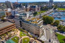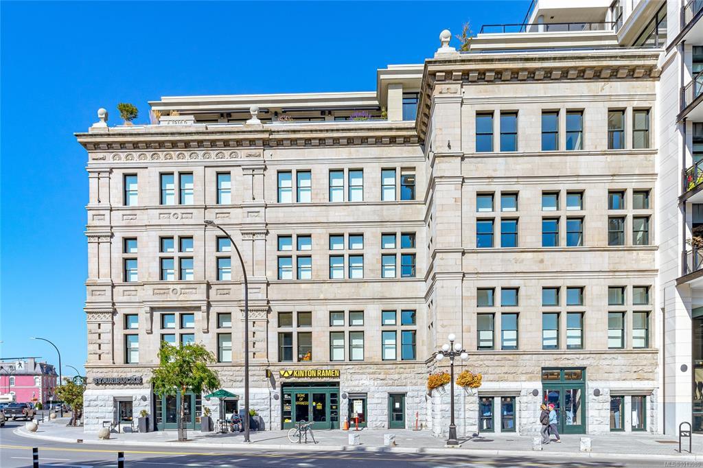 Located in the iconic Customs House on Victoria’s Inner Harbour, this studio home offers 524 sq ft of well-designed living space. The perfect Pied-à -terre, the open layout features 10’ ceilings, wide-plank hardwood floors, and a modern kitchen with Bosch appliances, quartz countertops, and sleek cabinetry. The main living area extends seamlessly to a spacious private patio, perfect for morning coffee or evening relaxation. Thoughtful details include in-suite laundry and ample storage. Residents enjoy access to premium amenities including a fully equipped gym, steam and sauna rooms, concierge service, and an elegant lobby that reflects the building’s heritage character. Steps from the Empress Hotel, BC Legislature, restaurants, shopping, and the Inner Harbour, this is a rare opportunity to enjoy a landmark building in one of Victoria’s most desirable locations.