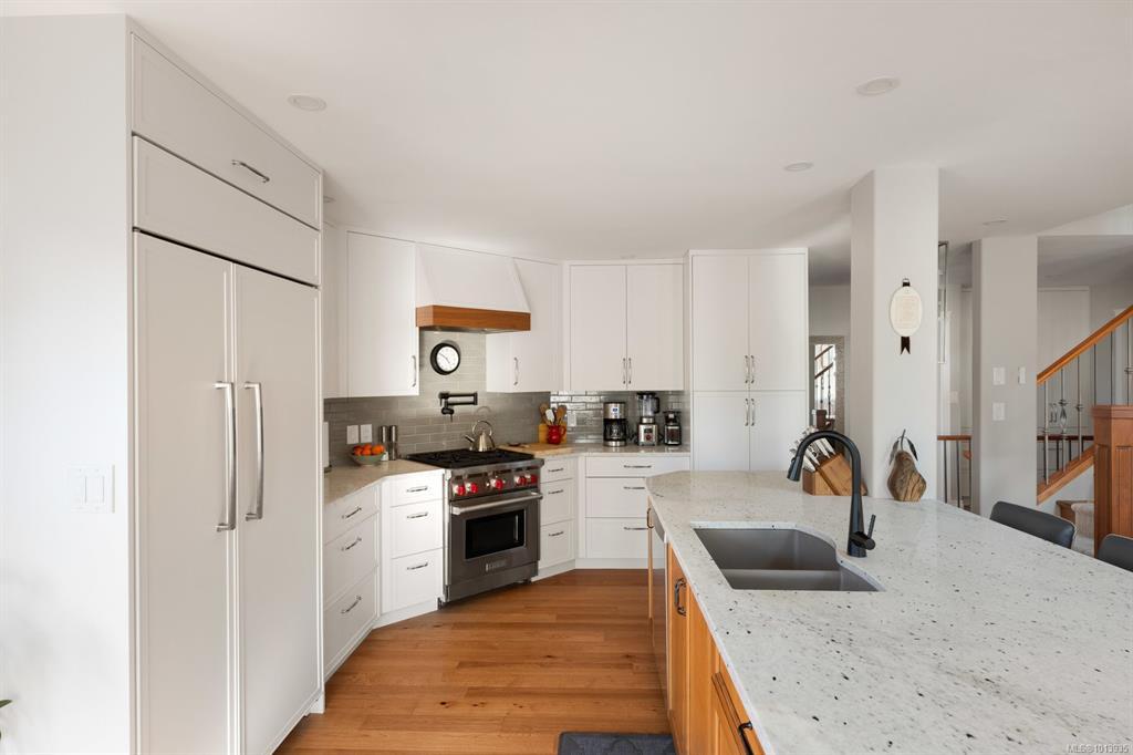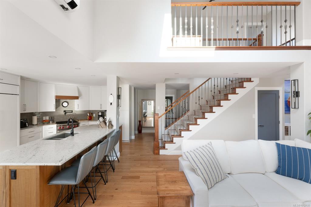 Step inside this West Coast–inspired 4 bed/3 bath custom home in Gibraltar Bay, beautifully renovated in 2021. Designed for easy main-floor living, the vaulted entryway opens to a bright, contemporary plan where kitchen, dining and living blend seamlessly around a striking gas fireplace. The chef’s kitchen is anchored by a Wolf gas range, Sub Zero fridge, Bosch dishwasher and a generous island perfect for entertaining. Heated floors add comfort in the bathrooms, while the primary suite offers privacy and style. Outdoor living is effortless with a sundeck and gas hook-up for BBQs, a private hot tub and a sun-filled, fenced courtyard. Located on a quiet cul-de-sac street with access to the community’s protected green space, this home combines natural surroundings with modern upgrades including a heat pump, alarm system, irrigation, new garage door and repainting throughout. A rare blend of comfort, convenience, and coastal charm.