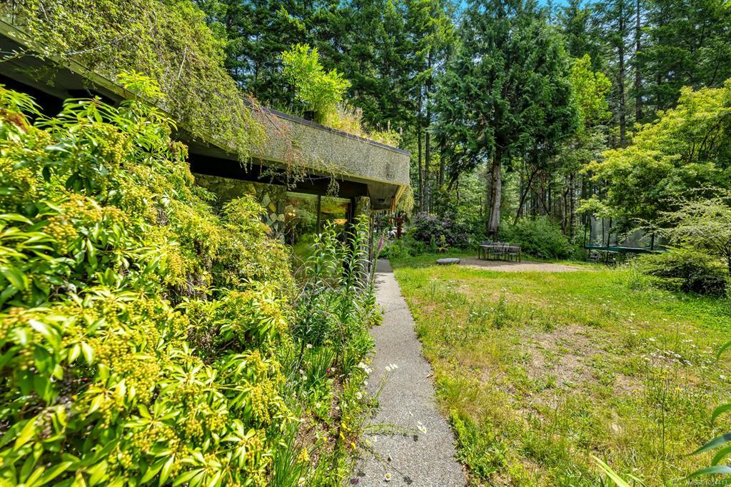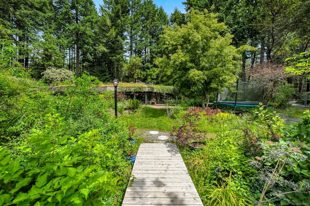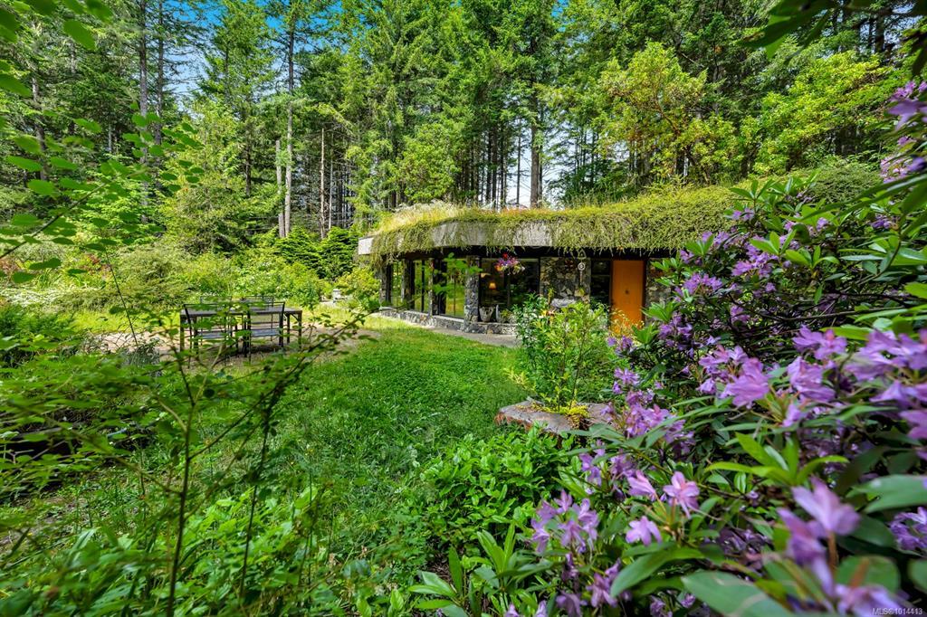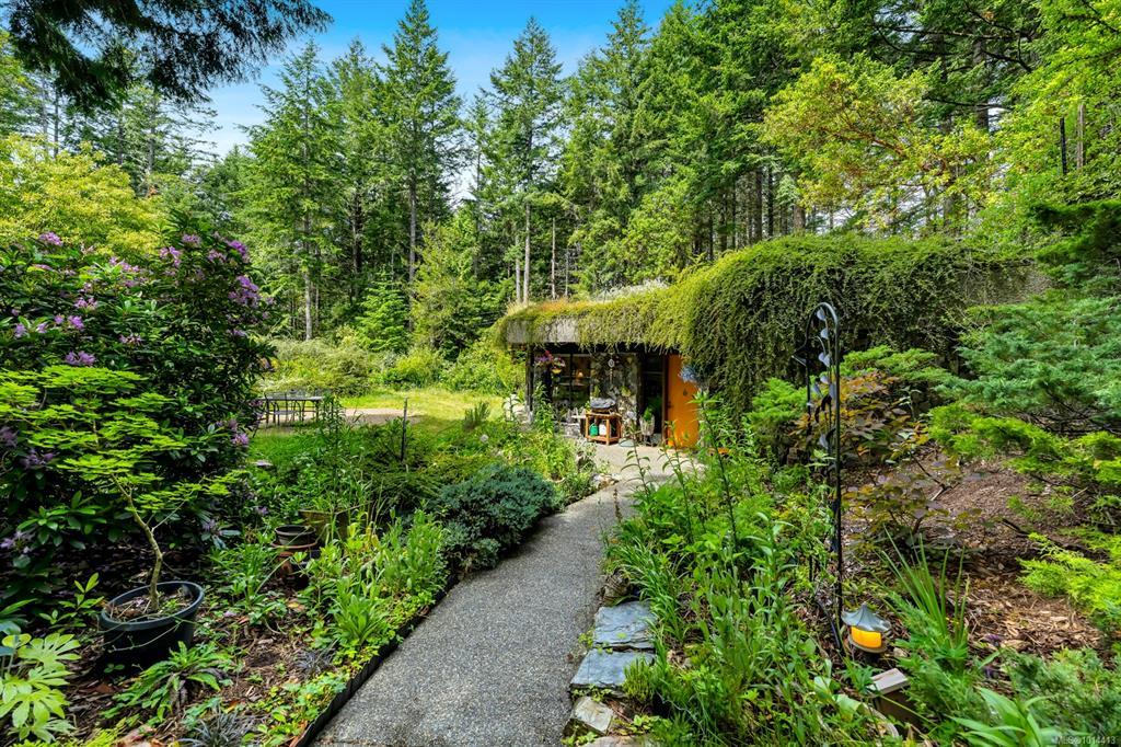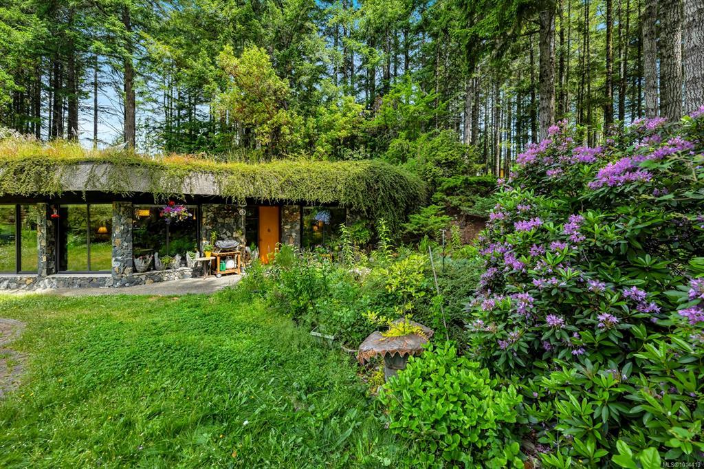 Discover an extraordinary retreat on 10 private acres in serene Metchosin. This secluded property showcases a remarkable rock-faced, all-concrete earth home with a stunning living roof—designed for durability, energy efficiency, and a unique lifestyle close to nature. Inside, enjoy tile floors, granite countertops, heated bathroom floors, and a custom cherry kitchen with built-in appliances. The home offers three bedrooms, two modern bathrooms, and the peace of mind of a backup generator. Step outside into a true gardener’s paradise with a fully fenced and irrigated garden featuring fruit trees, vibrant flowers, mature rhododendrons, and a greenhouse for year-round growing. Relax and entertain on the new yellow cedar deck with gazebo, take a dip in the above-ground pool, or unwind in the outdoor shower and hot tub. Wander wooded trails to a pinnacle lookout with sweeping views. This rare offering is more than a home—it’s a lifestyle of privacy, sustainability, and natural beauty.
