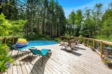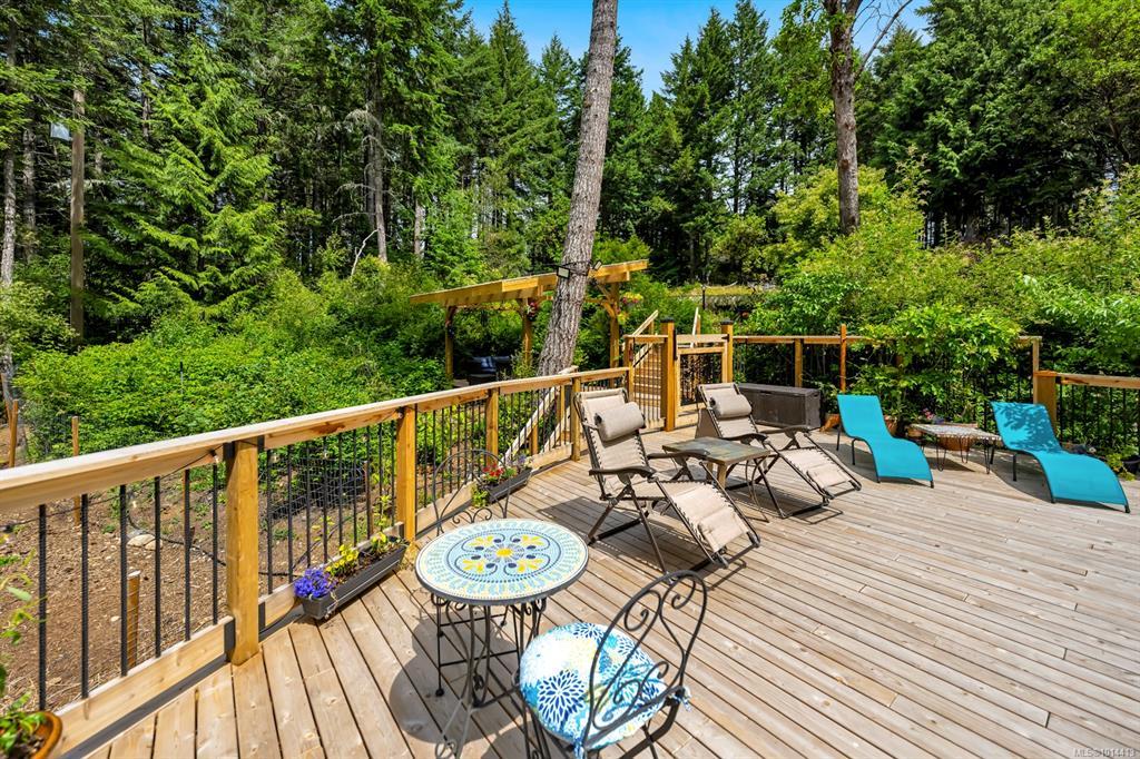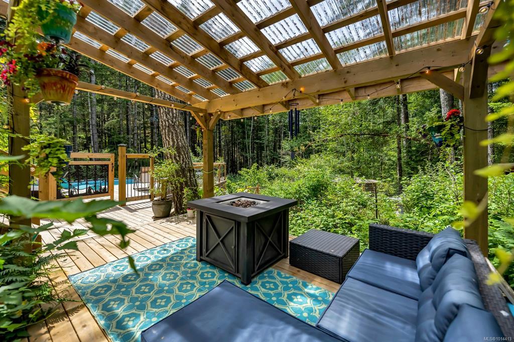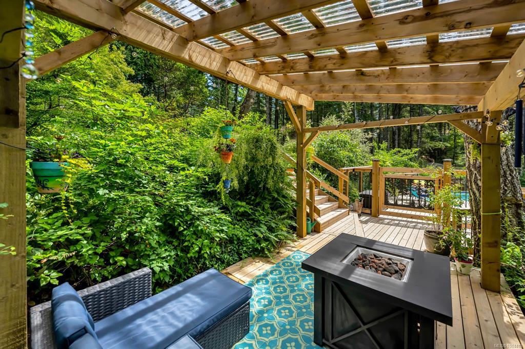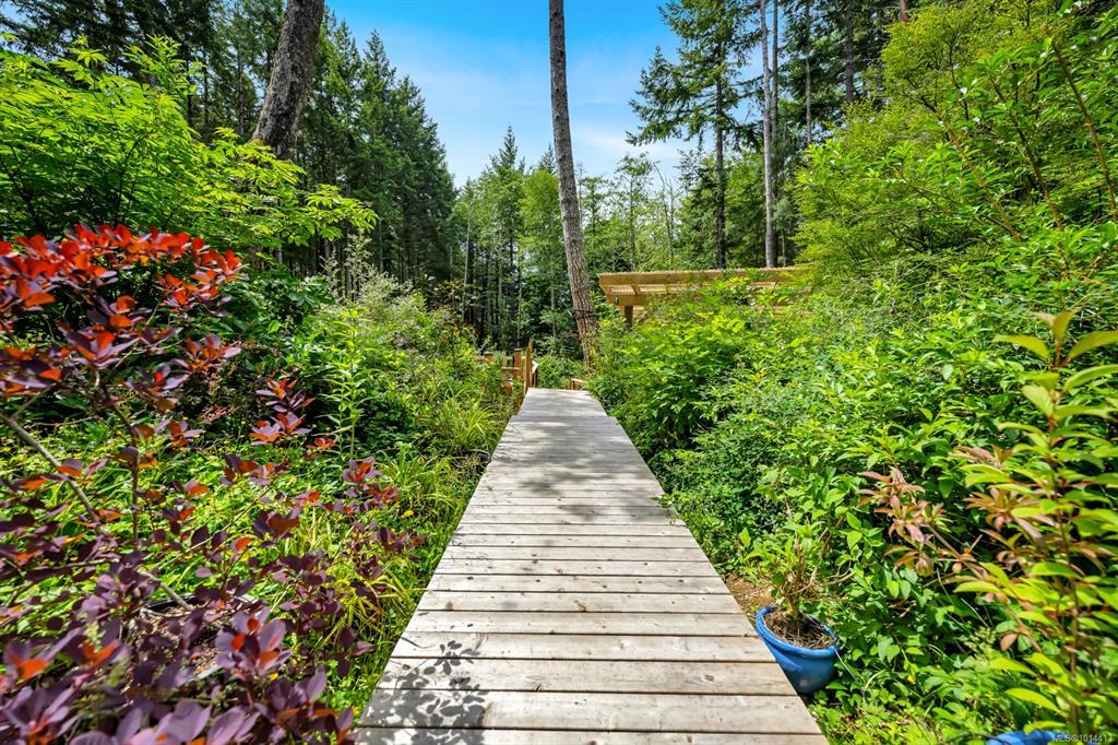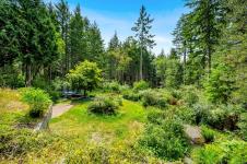 Discover an extraordinary retreat on 10 private acres in serene Metchosin. This secluded property showcases a remarkable rock-faced, all-concrete earth home with a stunning living roof—designed for durability, energy efficiency, and a unique lifestyle close to nature. Inside, enjoy tile floors, granite countertops, heated bathroom floors, and a custom cherry kitchen with built-in appliances. The home offers three bedrooms, two modern bathrooms, and the peace of mind of a backup generator. Step outside into a true gardener’s paradise with a fully fenced and irrigated garden featuring fruit trees, vibrant flowers, mature rhododendrons, and a greenhouse for year-round growing. Relax and entertain on the new yellow cedar deck with gazebo, take a dip in the above-ground pool, or unwind in the outdoor shower and hot tub. Wander wooded trails to a pinnacle lookout with sweeping views. This rare offering is more than a home—it’s a lifestyle of privacy, sustainability, and natural beauty.