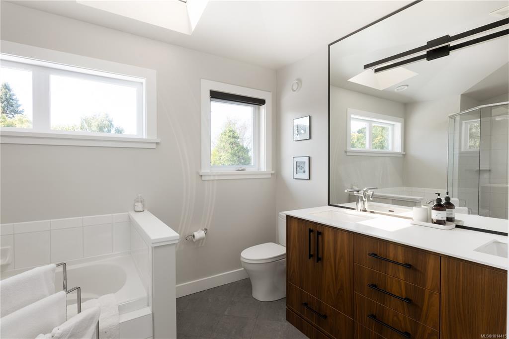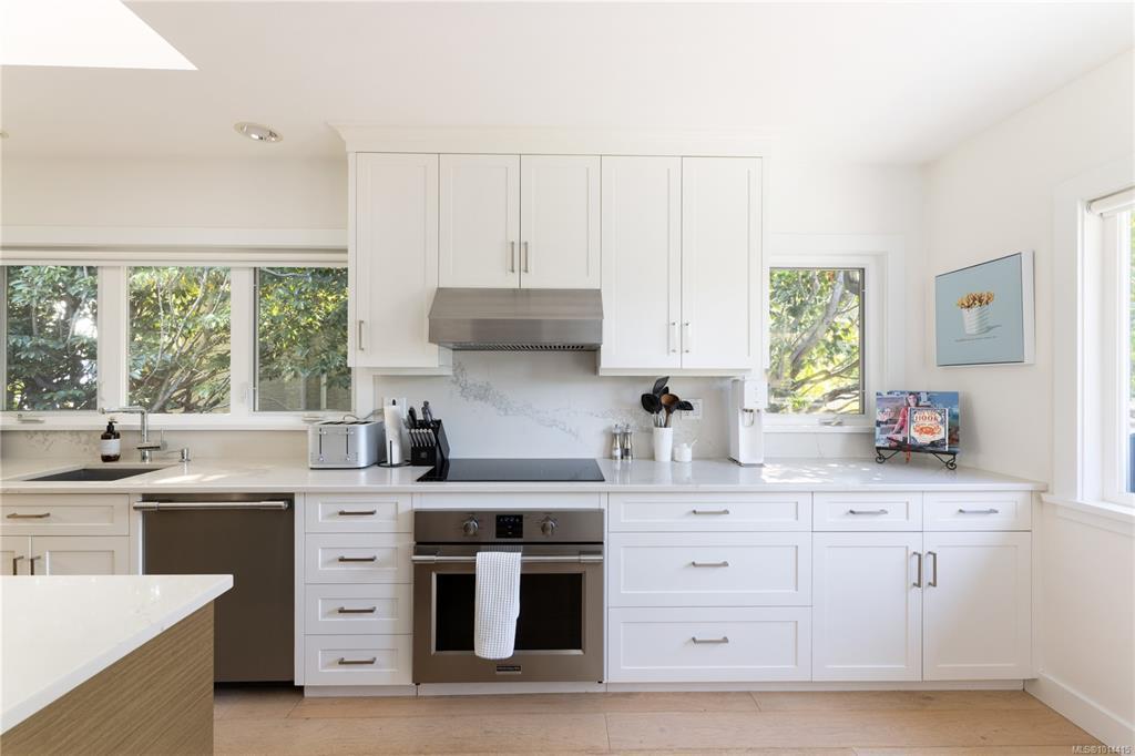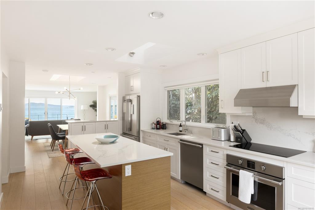 Experience oceanfront living at its finest with this fully reimagined Zebra Design residence on iconic Beach Drive. Encompassing over 3,100 sq. ft., this home showcases panoramic water views from all principal rooms. The main level offers an open-concept living, dining, and kitchen space bathed in natural light, complemented by wide-plank floors, skylights, and floor-to-ceiling sliders opening to the oceanview patio. Two bedrooms, a full bath, and laundry complete the level. Upstairs, the primary retreat features vaulted ceilings, dual walk-in closets, spa-inspired ensuite, and a private sitting area with sweeping views. The lower level provides versatility with a self-contained 1-bedroom suite, and abundant storage. Outdoors, enjoy a west-facing backyard oasis with lush landscaping and a pergola for private entertaining. A double tandem garage plus lane access ensures ample parking. Steps to Oak Bay Marina, Victoria Golf Club, and Oak Bay Beach Hotel, this is a rare coastal offering.