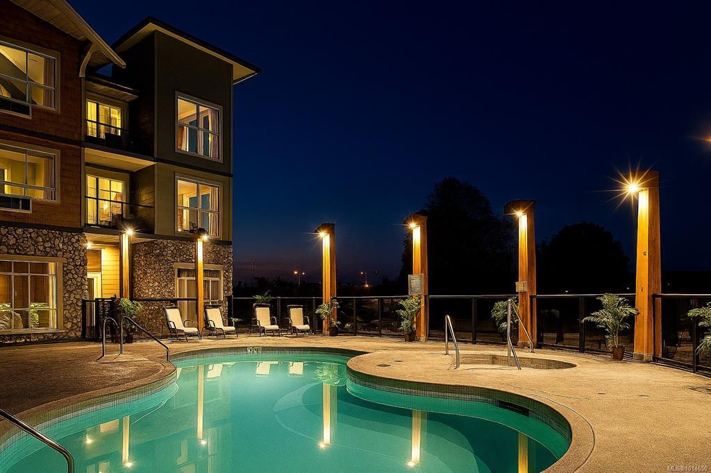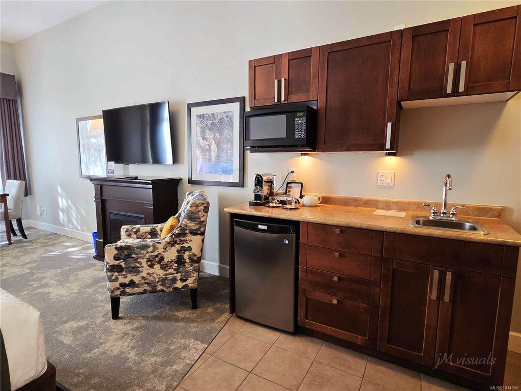 Experience West Coast charm and refined comfort in this luxurious main-floor corner suite at the Old House Hotel & Spa in Courtenay. This is a rare chance to own ALL 4 QUARTERS of the same unit - enjoy up to 3 weeks’ personal use monthly, with the rest earning income via professional hotel management. Vaulted ceilings and expansive windows create a bright, airy retreat, fully furnished with upscale finishes. Relax by the fireplace, prepare light meals in the petite kitchen, and unwind in the spa inspired bath with walk in shower and separate tub. Resort amenities include a heated pool, hot tub, Ohspa, Locals Restaurant, fitness gym, EV charging, and lush grounds. Pet friendly, with underground parking and easy access to the riverway trail, shopping, dining, golf, beaches, Mt. Washington, and Comox Airport. This low maintenance getaway blends luxury, convenience, and revenue potential. Strata Fee: $591.40/month; Assoc. Fee: $872.68/month; GST applies; not for full time living.
