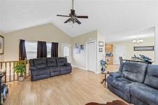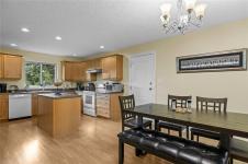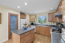 Mountain View Rancher with Walk-Out Basement! This well-designed home features a vaulted-ceiling living room with a cozy propane fireplace, an open kitchen and dining area, and access to a covered deck with spectacular mountain views. The main floor also offers a spacious primary bedroom with convenient “cheater” access to a spa-inspired bath with separate shower and oversized soaking tub. The walk-out lower level expands the living space with a large recreation room, two generous bedrooms, and a full bathroom. Outdoors, a powered storage room accessible from the backyard provides ample space for tools, equipment, or hobbies. A perfect blend of comfort, functionality, and beautiful views!
