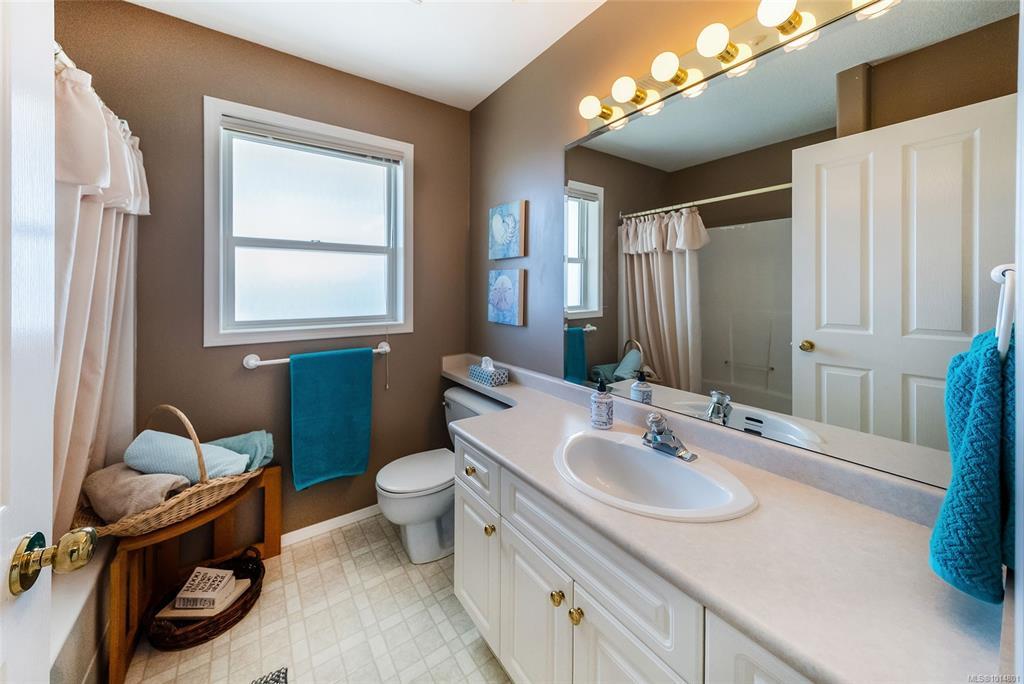 Livingroom and dining combo allows for many options for furniture placement & full enjoyment of the natural gas fireplace, Master bedroom has full ensuite with jetted tub & separate shower & Large walk in closet. Private door to sundeck. Lower level has 2 spacious bedrooms, full bath, & a family room with access to another ocean view sundeck. Large storage room plus Extra 3rd level storage. Manicured low maintenance yard. Located in the heart of Departure Bay close to the beach, ferries, golf course & shopping Other features - new hot water tank May 2023, Phantom screens, quality designer window blinds, large double garage. 55+ strata, pets allowed.