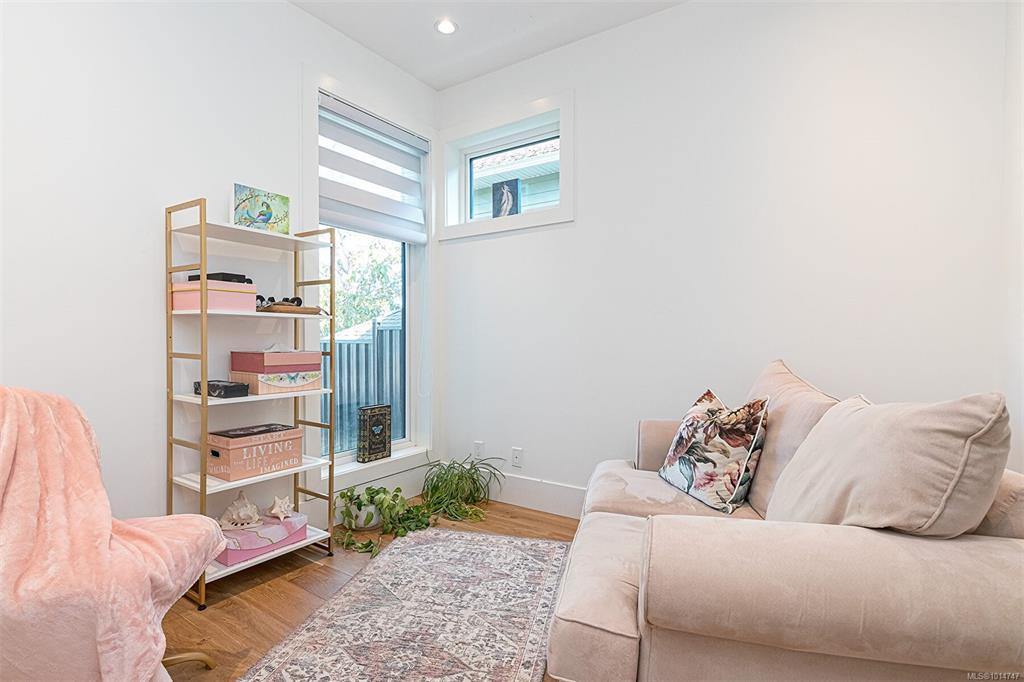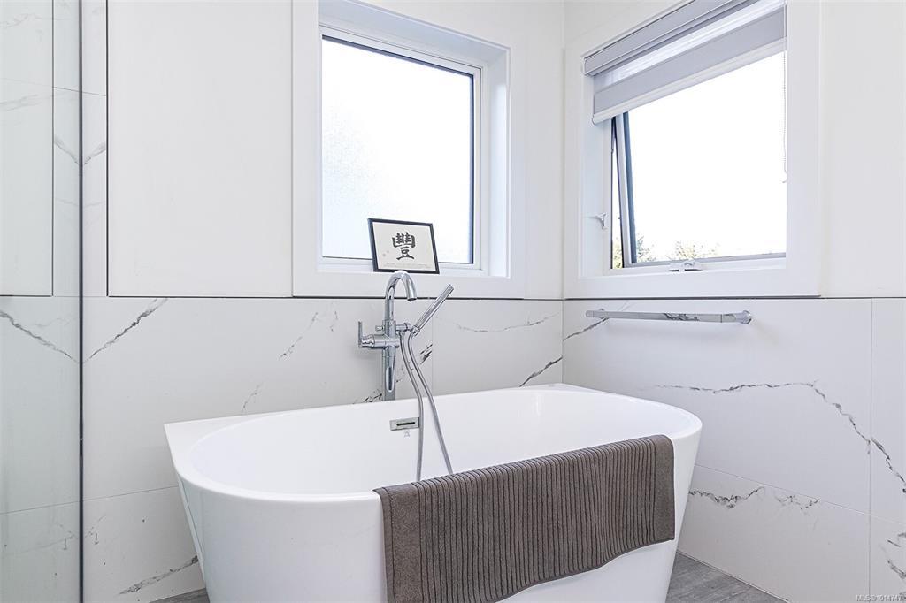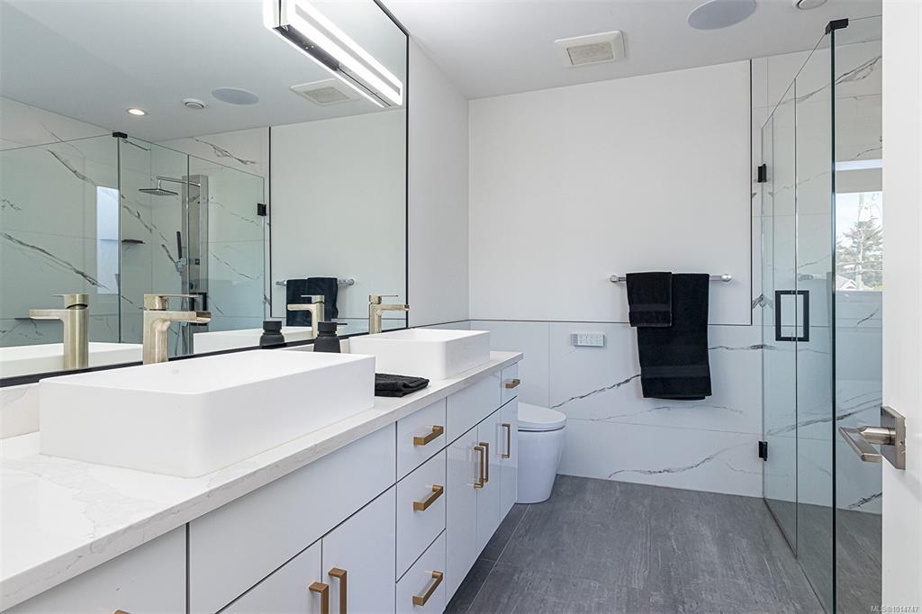 Seaside Living Redefined--Contemporary Design, Prime Location!Just steps from Gyro Park Beach and Cadboro Bay Village, this 2022 custom built home delivers Location, Luxury and Lifestyle. Main level welcomes you with a bright open floor plan featuring a spacious living room w/gas fireplace, Gourmet Kitchen w/waterfall island, High-end appliances,& 1 BD, 1BA and 1Den. Upstairs, primary suite impresses w/its spa-inspired 5pc ensuite, walk-in Closet and accompanied by 2 Beds&full BA. A separate-entry extra accommodation is designed for both family living&income potential for boarding students with UVic being mins away. Premium finishes include radiant in-floor heating, engineered oak floors&ceramic tiles, triple-pane windows, metal roof, heat pump/AC & double car garage w/EV hook up. Approved 700sqft Garden Suite ready for construction adds outstanding value. Live the coastal dream while securing a smart investment!