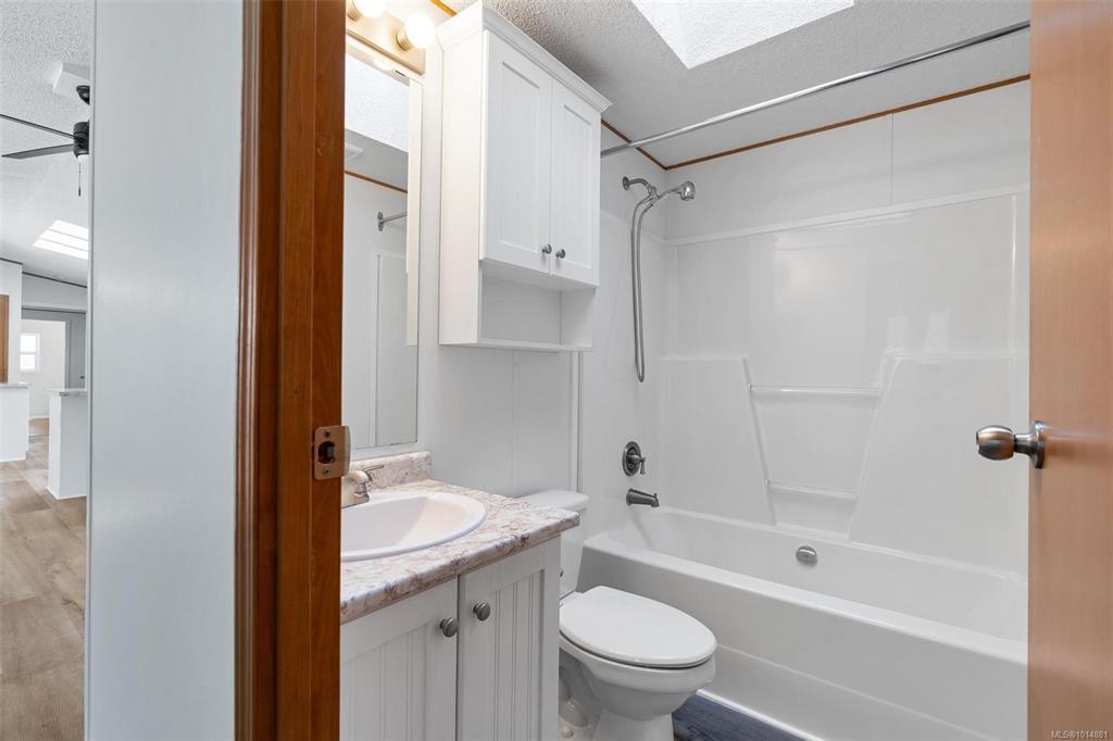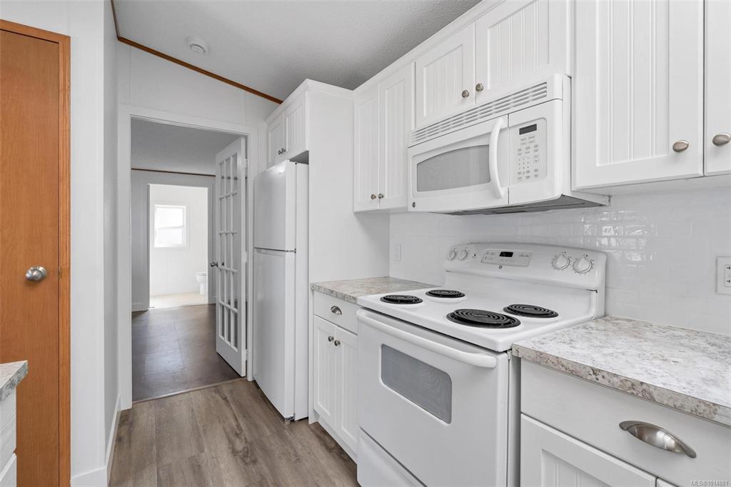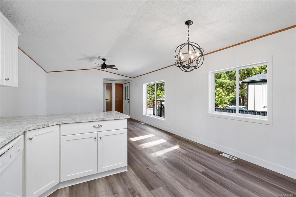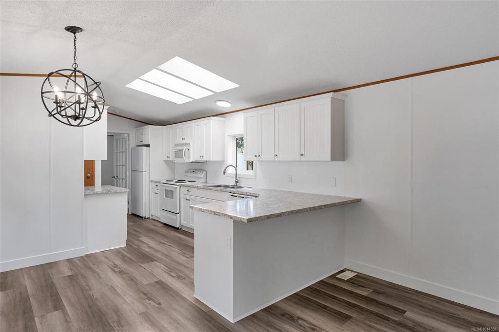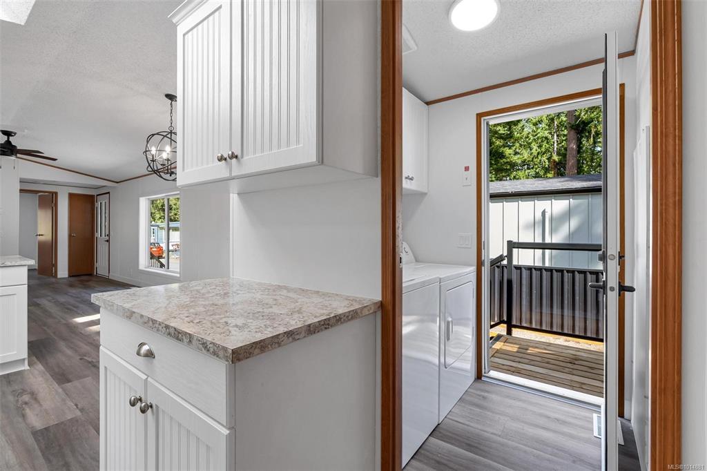 Lovely updated single-wide manufactured home featuring a modern colour palette and stylish lighting throughout. Offering 2 bedrooms and 2 bathrooms, this home has seen numerous upgrades, including a new roof, new siding, fresh paint, new countertops, and updated light fixtures. Built with 2x6 framing for added energy efficiency, it combines comfort and style. Located in the quiet Timberland Mobile Home Park, just minutes to Ladysmith or Nanaimo, this property provides both convenience and tranquillity.