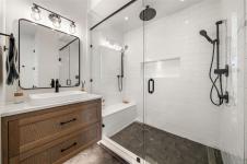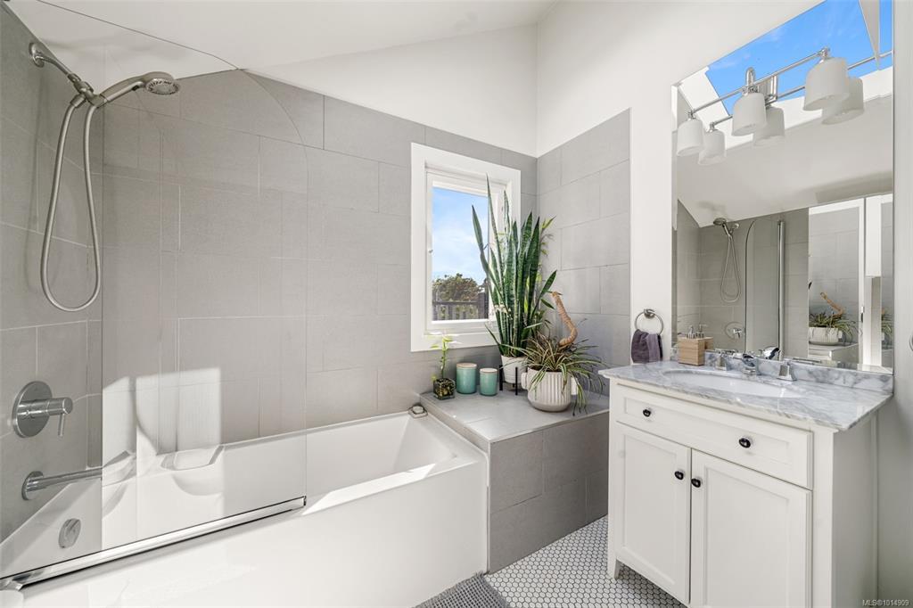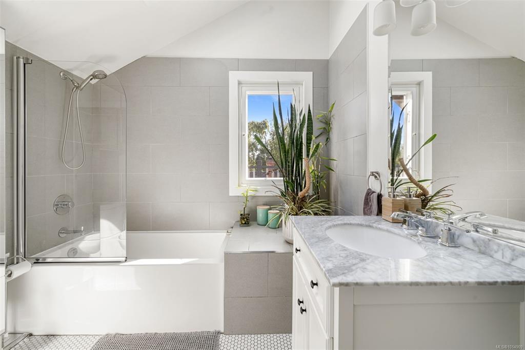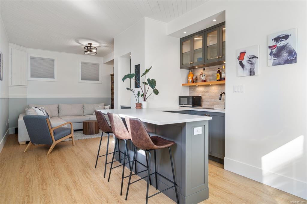 This extensively renovated home offers the perfect blend of classic character and modern comfort in a prime location near downtown, the Inner Harbour, and Cook Street Village. The stunning gourmet kitchen features high-end stainless steel appliances, a charming bay window breakfast nook, and flows beautifully into the dining and living areas—ideal for entertaining. Enjoy 9-ft ceilings, wide plank wood floors, a cozy gas fireplace, and energy-efficient heat pump. The luxurious primary suite boasts a spa-like bath with heated floors, towel rails, and a large skylight. Downstairs, a brand-new lower level provides flexible space for family or income-generating short-term rentals. Outside, unwind in the fenced yard with a hot tub, and take advantage of the new 2-car driveway with EV charger, updated 200-amp electrical with 60-amp sub panel, plumbing, storm drains, and low-maintenance landscaping.