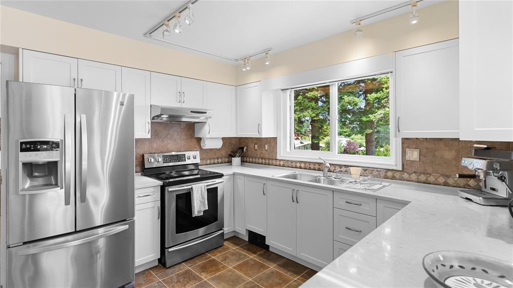 OPEN HOUSE SAT, 2-3:30PM. Welcome to 2059 Saltair Pl. With sweeping views of the Haro Strait, this gorgeous property captures the best of West Coast living in a peaceful setting you’ll never want to leave. Tucked away on a quiet cul-de-sac, this ocean-view home offers 3,500+sqft of thoughtfully designed living space. Upstairs, natural light floods an open layout with a spacious living room + family room with fireplaces, formal dining, and a bright kitchen with eating nook which opens up to oversized deck boasting stunning ocean views. Private primary BR suite ft skylight, WIC, dual vanities, soaker tub, walk-in shower & balcony. Downstairs offers 3 more bedrooms, full bath & laundry. Private one-bedroom in-law suite with separate entry includes eat-in kitchen, living with FP, WIC & secluded deck. Yard fts multiple seating areas & detached shed. Add'l fts garage, ample storage & large crawl space. Saltair Pl offers space, flexibility & coastal charm all in one. Follow your dream home.