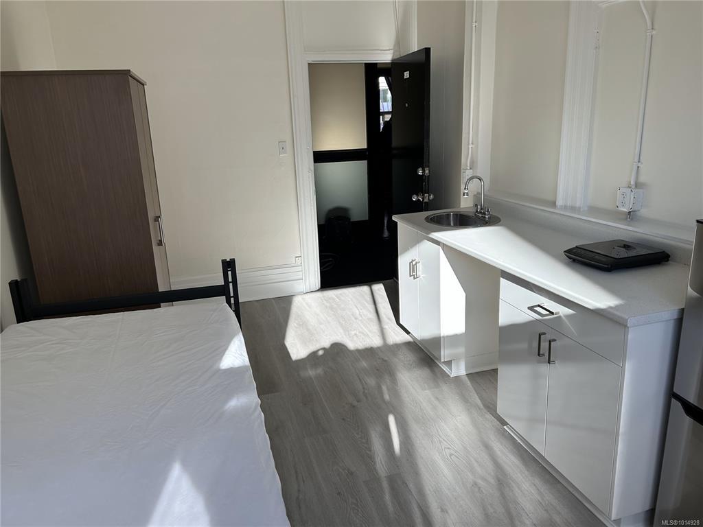 705-711 Johnson Street spans three floors, with the main floor comprised of two commercial retail units over approximately 6,900 sq. ft., the second and third floors are each 5,168 sq. ft. and have a total of 41 residential units. The total building area is 17,236 sq. ft. The two retail spaces boast 16’ ceilings and prominent Johnson Street frontage. 705 Johnson Street is occupied by Board with Friends, a locally owned and operated boardgame café. 707 Johnson Street is currently vacant and is purpose built for a gym but can accommodate a range of other uses. Each space features its own washrooms, with an additional shower amenity in 707 Johnson Street. The upper levels house 41 single occupancy rooms, known as York Hotel, each level is equipped with half and full washrooms, with a laundry room on the third floor. The residential units are currently rented at below market rates, offering a potential to increase the overall income of the property.