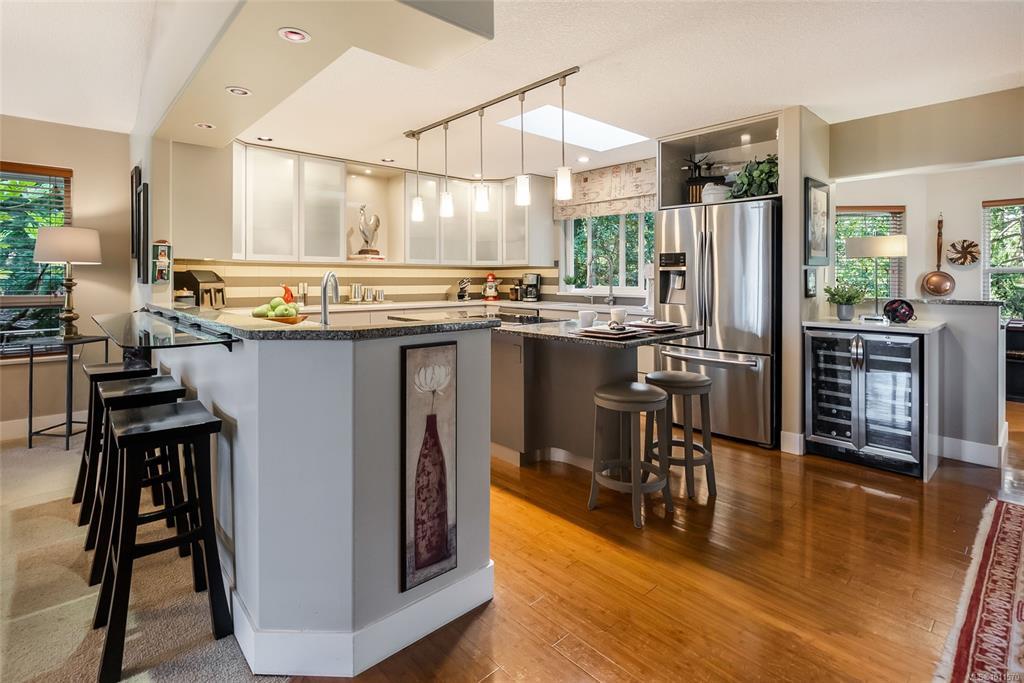 Ocean & golf course views from this elegant Fairwinds rancher overlooking the 18th green of the Fairwinds golf course. Offering 3beds/2baths & a fully equipped renovated kitchen overlooking the dining, living & family rooms, this home lends itself to people that love to entertain family & friends with its connected plan where the kitchen is the hub. A partial unfinished basement offers plenty of storage.The stunning gardens with a serene water feature & exquisite plantings & flora can be enjoyed from the sizeable covered deck offering an addn’l space to host loved ones while enjoying the splendid summers the island provides. The spa inspired stunning ensuite is the perfect place to unwind after a full day of golf, boating or hiking the many trails this location offers. A walk across the street to join neighbors for dinner at the Greenview Taphouse, a quick drive to Nanoose Bay Café or a short jaunt to Brickyard Bay for an evening dip are just a few of the benefits this location offers.