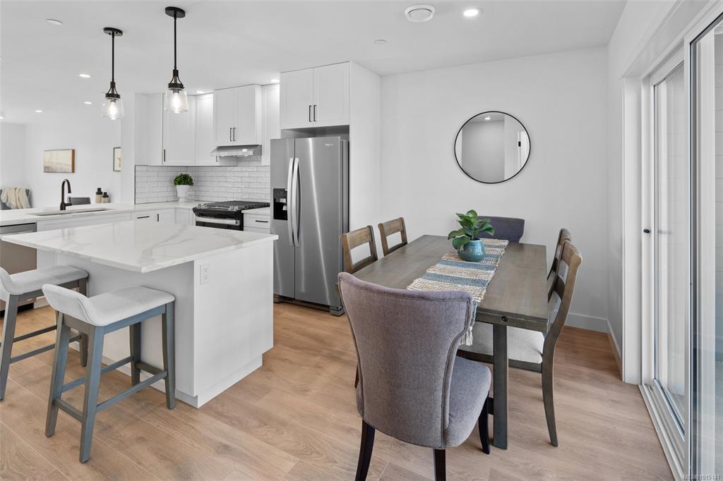 Step into this nearly new, thoughtfully designed 3-level townhome offering 1,880 sq ft of versatile living space—ready for you to move in today! Featuring 3 spacious bedrooms, each w/ its own ensuite & walk-in closet, this home is ideal for multi-generational living, home office flexibility, even shared living arrangements. The 2nd flr is the heart of the home, showcasing an open-concept living area complete w/ an electric fireplace, a dedicated dining space & spacious kitchen w/ 2 large islands—perfect for cooking, gathering & entertaining. Enjoy yr-round comfort with a dedicated HVAC system for the upper levels & separate wall unit for downstairs. Take in the expansive views from 3 private balconies each offering a unique vantage point of your new neighbourhood. Additional highlights: roughed in EV charger, crawlspace, 0 yard maintenance, Walking distance to transit & dwntwn Sooke, No size restrictions on pets! Don’t miss this opportunity to own a home that adapts to your lifestyle!