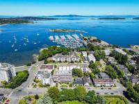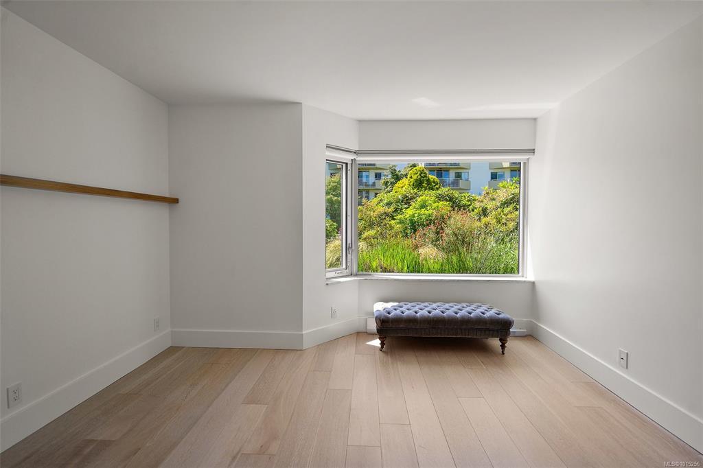 A rare offering in South Oak Bay. This beautifully updated 2 bedroom, 2 bathroom ground-floor corner suite combines refined design with unbeatable location. Featuring over 1,460 sqft of elegant living space, the home offers custom cabinetry, stone countertops, wood floors and a flowing open layout. The kitchen is both stylish and functional, opening onto a bright living area and two private patios. The spacious primary suite includes a walk-in dressing area and spa-like ensuite with heated floors and a soaker tub. A second bedroom and full bathroom offer flexibility for guests or workspace. This home includes two secure underground parking stalls with EV charger, separate storage, and ground-level access in a well-maintained and exceptionally well managed concrete and steel building. Just steps to Oak Bay Village, the Marina, Victoria Golf Club, and scenic beaches—this is a chance to enjoy the best of coastal living in one of Victoria’s most desirable communities.